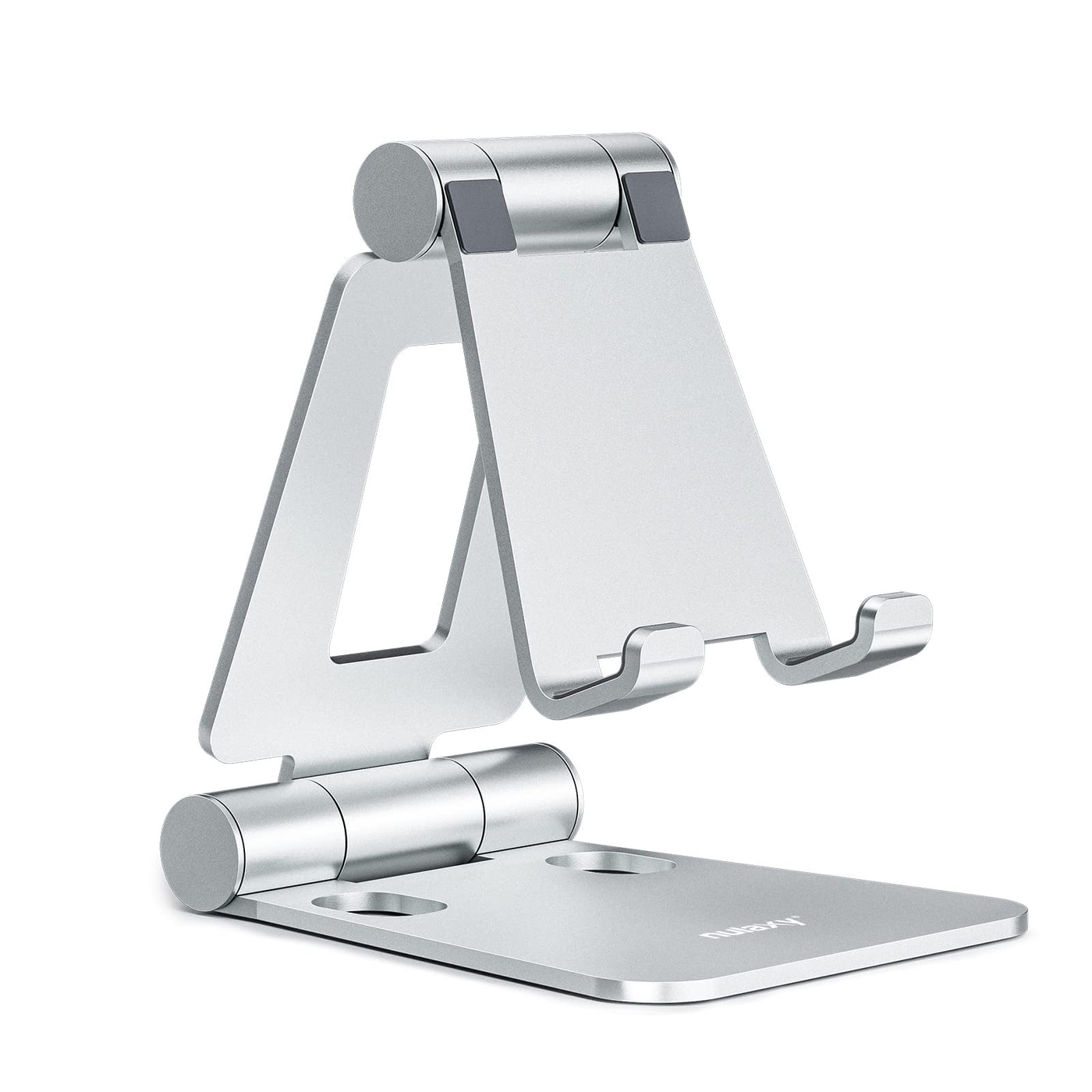 Nulaxy Dual Folding Cell Phone Stand, Fully Adjustable Foldable Desktop Phone Holder Cradle Dock Compatible With Phone 16 15 14 13 12 11 Pro Xs Xs Max Xr X 8, Nintendo Switch, All Phones Silver