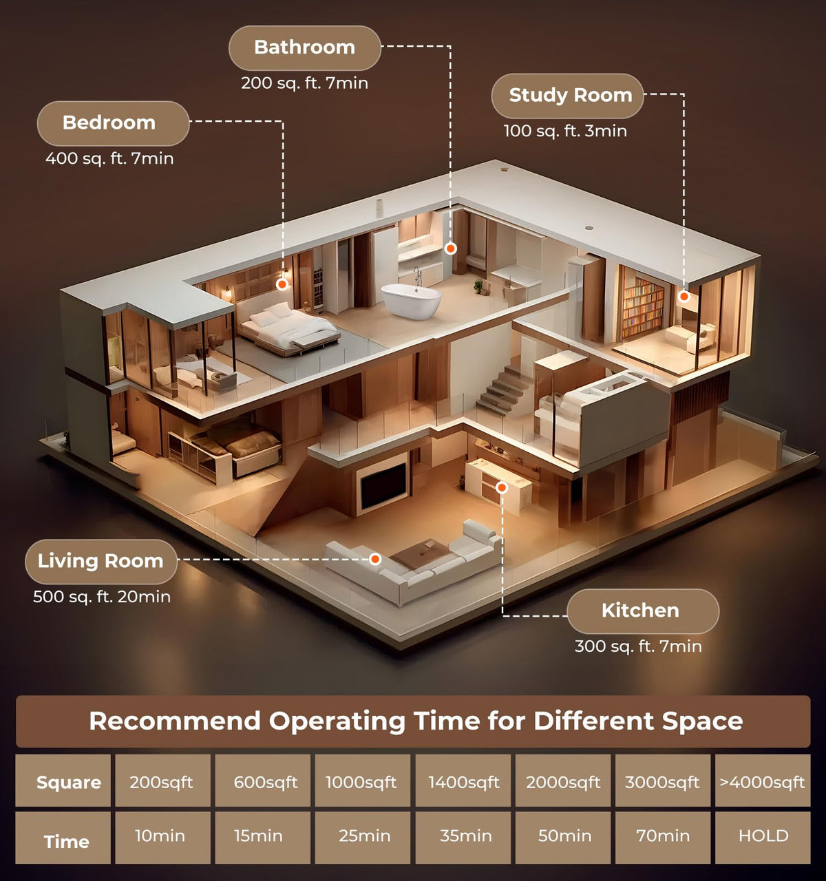 Q: Is the Ozone Generator safe to use around people and pets?A: No, the ozone generator should only be used in unoccupied spaces. It's important to keep people, pets, and plants away during operation and to ventilate the area for 30-60 minutes after use.