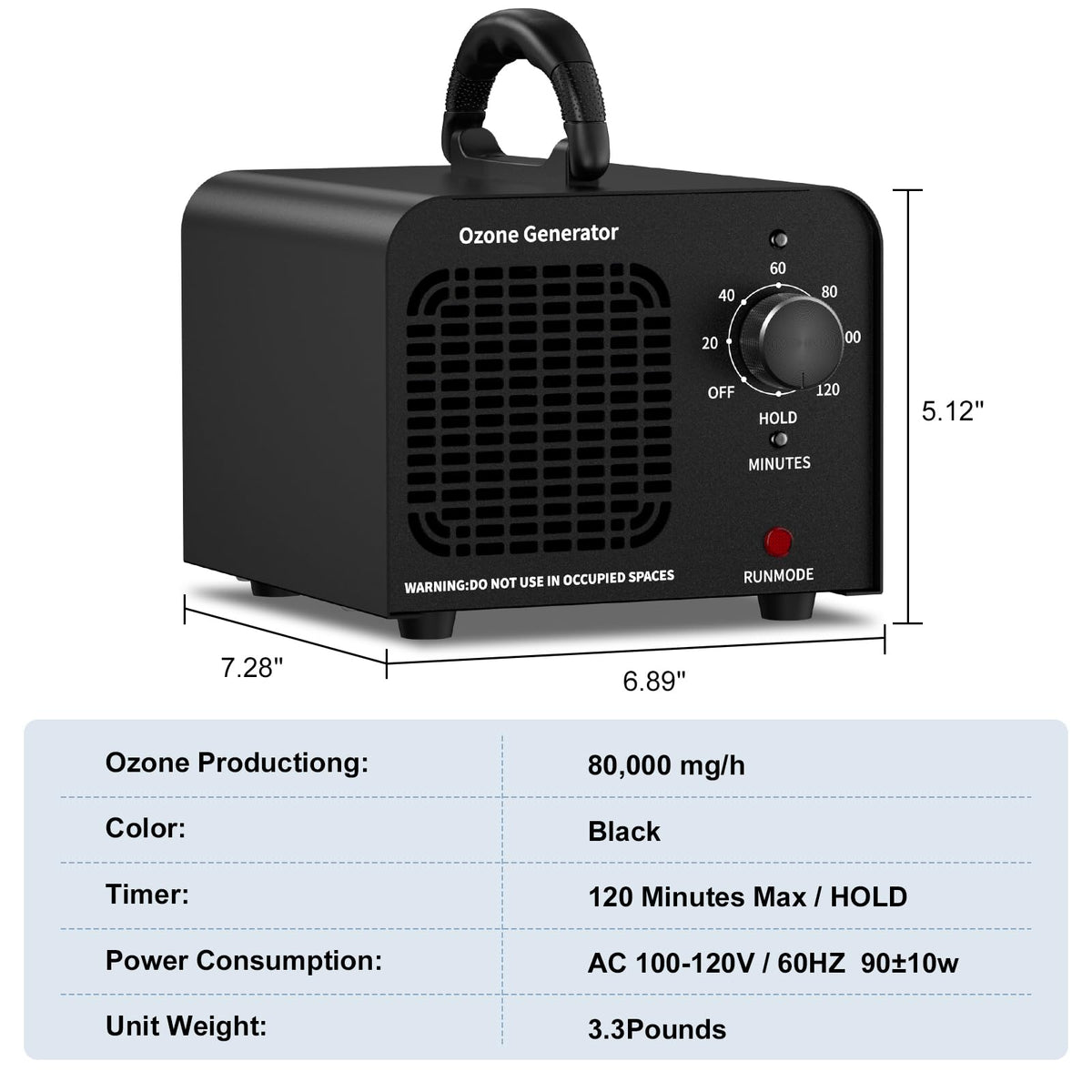 Ozone Generator 80000Mg/H, Ionizer High Capacity Odor Eliminator, Ozone Machine For Car/Home/Smoke/Pet Odor Removal(Black)
