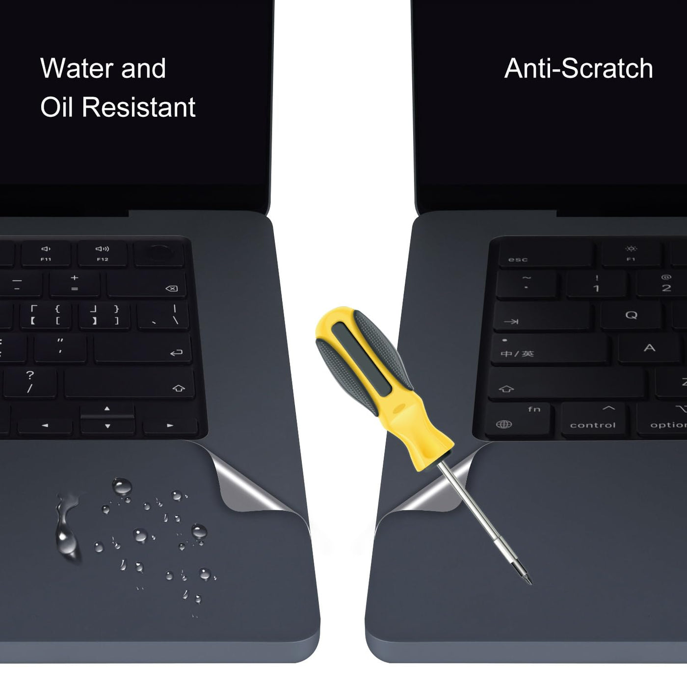 Q: How does the palm rest cover protect my MacBook?A: The palm rest cover provides everyday protection against dirt, grime, spills, and scratches, helping to extend the lifespan of your MacBook Air's trackpad and palm rest area.