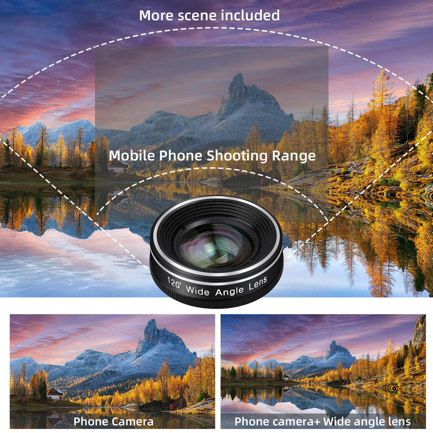 Phone Camera Lens, Godefa 3 In 1 Phone Lens Kit 205 Fisheye Lens + Macro Lens + 120 Wide Angle Lens,Clip On Cell Phone Cam