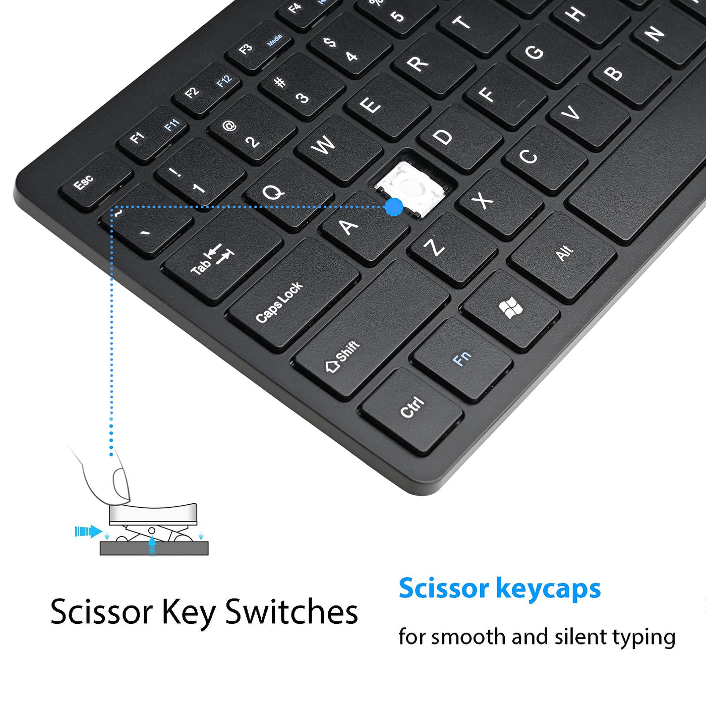 Q: How does the scissor switch design benefit typing experience?A: The scissor switch design of the keys provides good flexibility and stability, resulting in a quieter typing experience with clear feedback, making it comfortable for extended typing sessions.