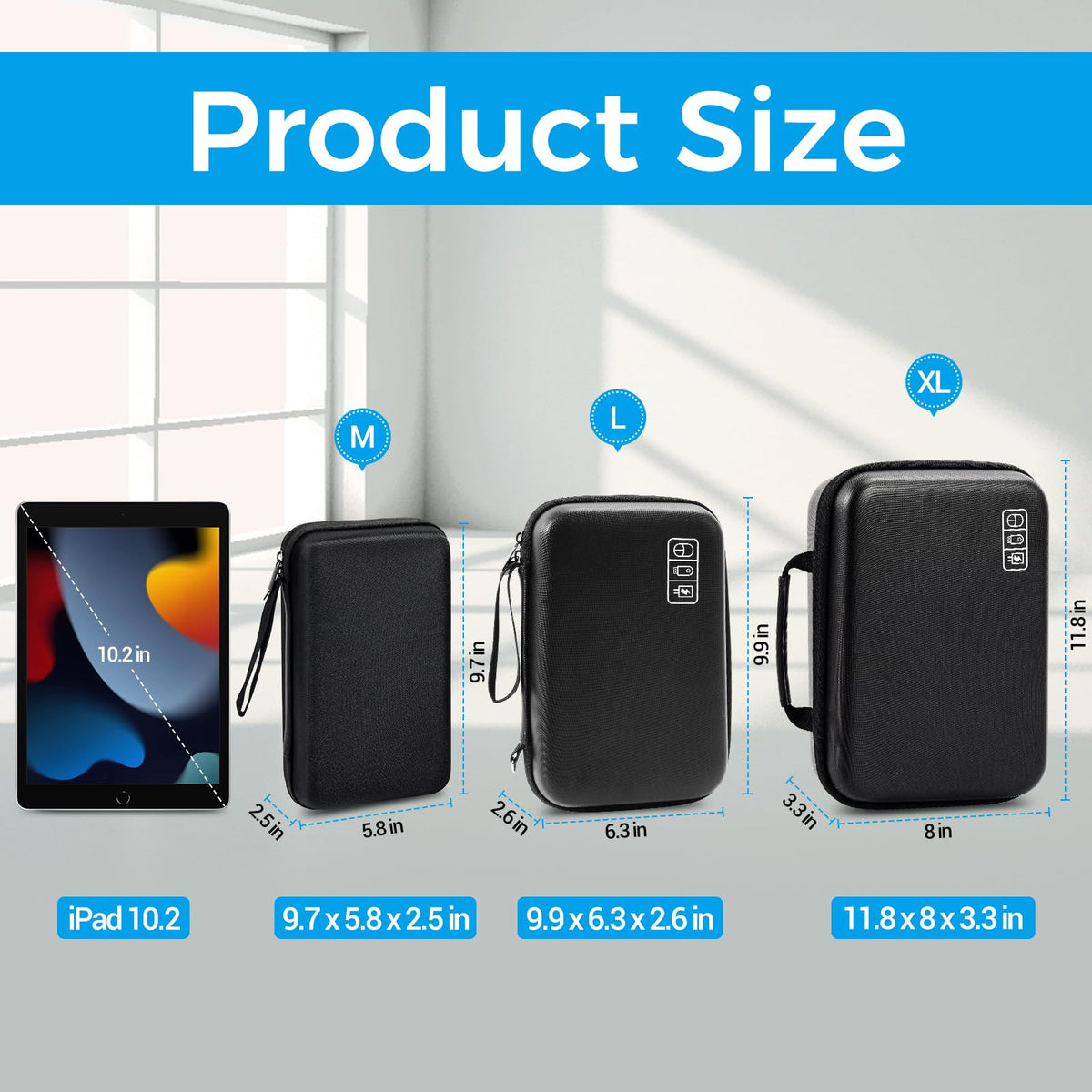 Large Capacity: Portable Hard Tech Travel Case For Organizing Small Electronics Accessories, Like Macboook Charger, Cables, Power Bank, Usb Flash Disk, Sd Card, Mouse, Earphone, Power Adapter, Etc. Dimension:External 9.72* 5.82* 2.55 Inches, Internal 9.32 X 5.43 X 2.16 Inches | Full Protection: Premium Water-Resistant Hard Eva Material Exterior And Shock Absorbing Soft Lining Interior, Offer Double Protection Against Scratches, Impacts, Spills, And Dust | Enough Space: 5 Different Size Zipper Mesh Pockets Are Designed For Managing And Protecting Small Electronics And Accessories (Phone, Selfie Stick, Batteries, Memory Cards, Etc.) | Multi-Pocket Storage: Different Sizes Of Mesh Bag Design, Smooth Metal Zipper, Convenient To Put Accessories In And Out, Ensure Each Accessory In Good Order Better-Using Experience | Easy To Carry: Lightweight And Compact Design With Quality Hand Strap For Easily Carrying Around; Sturdy And Smooth Double Zipper Design Allows Open And Close Easily