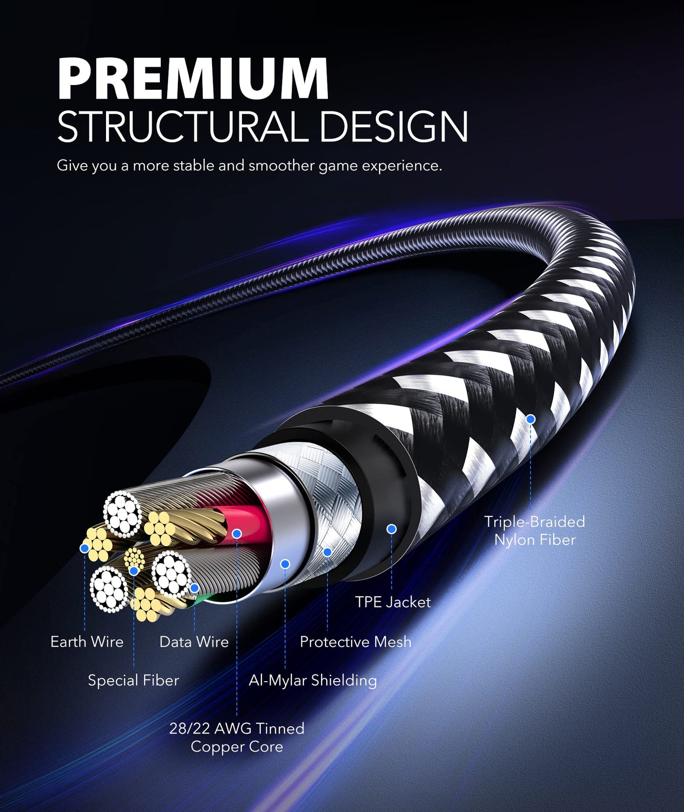 - Super Durability: Constructed with stainless steel connector heads that slot in easily and securely, this cable won’t loosen or fall out during use, providing peace of mind during gameplay.