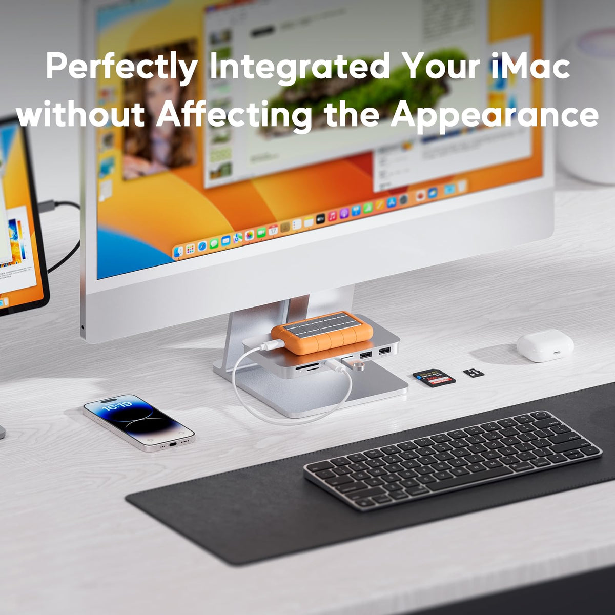 Imac Accessories For Imac 2021/2023, Pulwtop Usb C Hub For Imac With Usb A/C 10Gbps, Imac Hub For M1/M3, 2 Usb A 2.0, Sd/Tf Card Reader For Imac 24 Inch & Studio Display 2