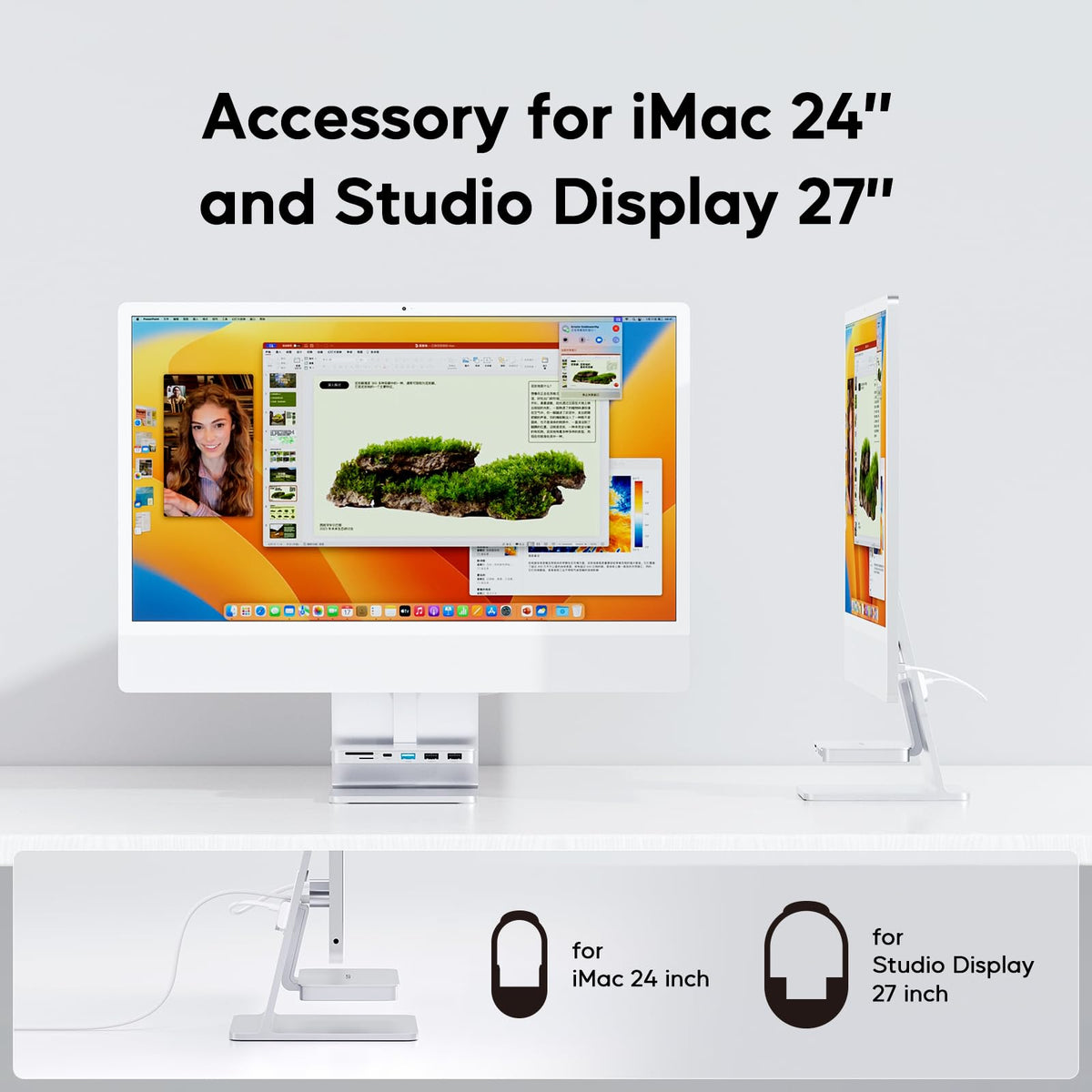 Q: What devices are compatible with the PULWTOP USB C Hub for iMac?A: The PULWTOP USB C Hub is compatible with iMac 2021, 2023, and 2024 models equipped with M1, M3, or M4 chips, as well as the Studio Display 27-inch. It is specifically designed for iMac 24-inch models and supports a variety of devices with full-featured Type C ports.