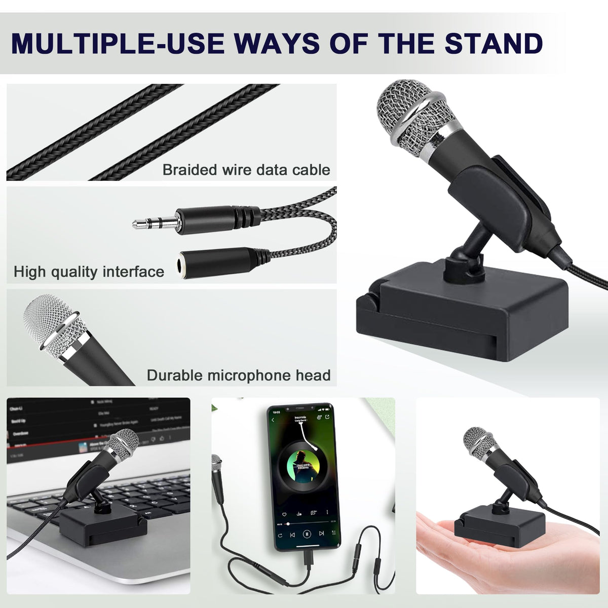 Specification: Material: Aluminum Alloy Color: Black/Silver Mini Microphone Size: 4 X 6 X 0.5 Inches Weight: 0.65 Oz Nylon Cable Length: 150Cm(59.05In) Power Supply: 3V Sensitivity: -47Db3Db (0Db=1V/Bar) Impedance: 2.2K Sensitivity Reduction: Within-3Db At 1.6V Operation Voltage: 1.5-12V Frequency Response: 20~1600Hz S/N Ratio: More Than60Db Interface: 3.5M (Used With Any Device Equipped With 3.5Mm) Suitable For: Widely Compatible With All Computers, Android Phones And Ios Phones How To Use The Multipurpose Mini Microphones? Insert The Microphone Into The Device. Plug The Headphones Into The Splitter. Open The Camera Or Karaoke Application, Then Start Recording Or Singing. Features: 1. Mini And Lightweight, Easy To Carry, Easy To Keep, Even In Your Small Pockets, Wallet, Etc. Mini Microphone Allows You To Sing Anytime, Anywhere. 2. Plug And Play, Plug In Your Mobile Phone And It Can Work With Karaoke App. 3.Richupon Mini Microphone Can Capture Sound From All Direction And Perform Accurate And Clear Vocals Sound. Package Included: 1 X Mini Microphone 1 X Transfer Line Please Note: * Please Allow A Slight Size Error Due To Manual Measurement. * Due To Different Monitors, The Colour May Be Different, Please Understand.