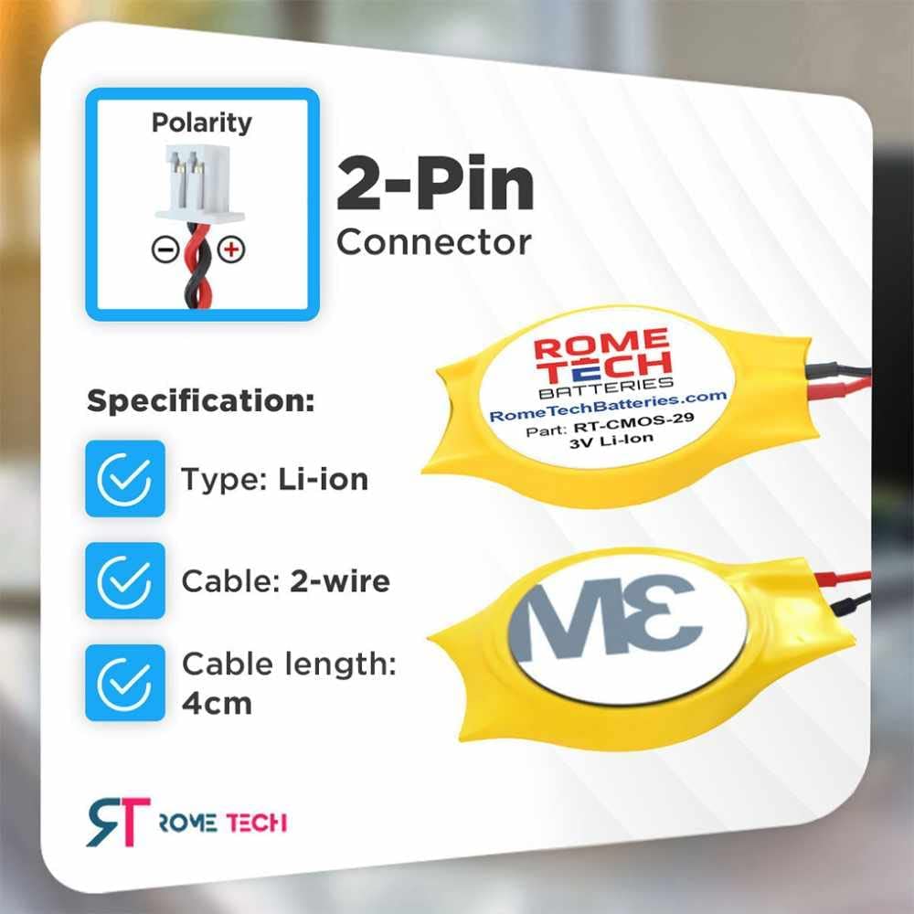 Best Solution For Your Device: Rome Tech Cmos Battery With A Cable Designed For Reliable Performance And High Durability, It Is Guaranteed To Maintain 80% Of Its Rated Capacity For 12 Months From The Date Of Installation. Laptop Cmos Battery Compatible Only With The Original Equipment Compatible Models: Intel Nuc 5Ppyh, Asrock Am1H-Itx, H110M-Itx, H270M-Itx/Ac, B550M Itx Motherboards, Playstation 2 Slim, Playstation 2 (70000, 75000), Playstation 3 (Cecha01 Cechb01 Ceche01 Cechh01) Rome Tech Cmos Battery Main Advantages: ? Improved 2 Pin And 2 Wires Cmos Battery Discharge Characteristics ? Resistance Welded Gold Plated Contacts For Maximum Performance; ? High Quality Graded And A' Grade Cells; ? Made Of Durable Abs And Polycarbonate Plastic Shells For High Endurance; ? Batteries Passed An Essential Testing Program That Includes Thermal Cycling, Oscillation, Overcharge Test Simulation And External Short Circuit. Click Add To Cart Now And Replace Your Old Broken Battery With Branded New Rome Tech Bios Cmos Battery!