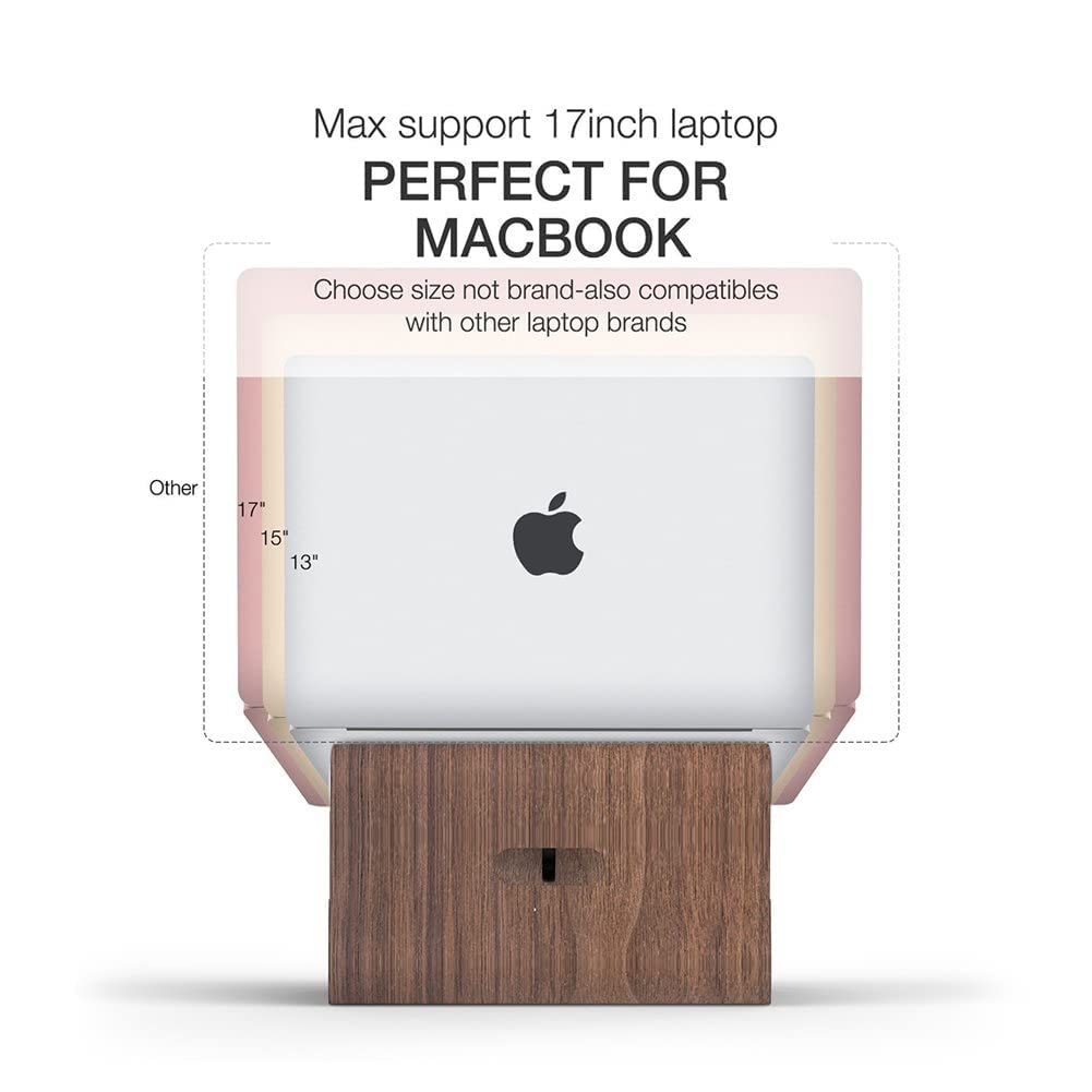 SAMDI Laptop Stand Wood, Wooden Cooling Computer Holder, Notebooks Desktop Mount for MacBook Air, Pro 13 15, iPad Pro 12.9, Dell XPS, Surface, Chromebook 11 to 17 (Walnut)