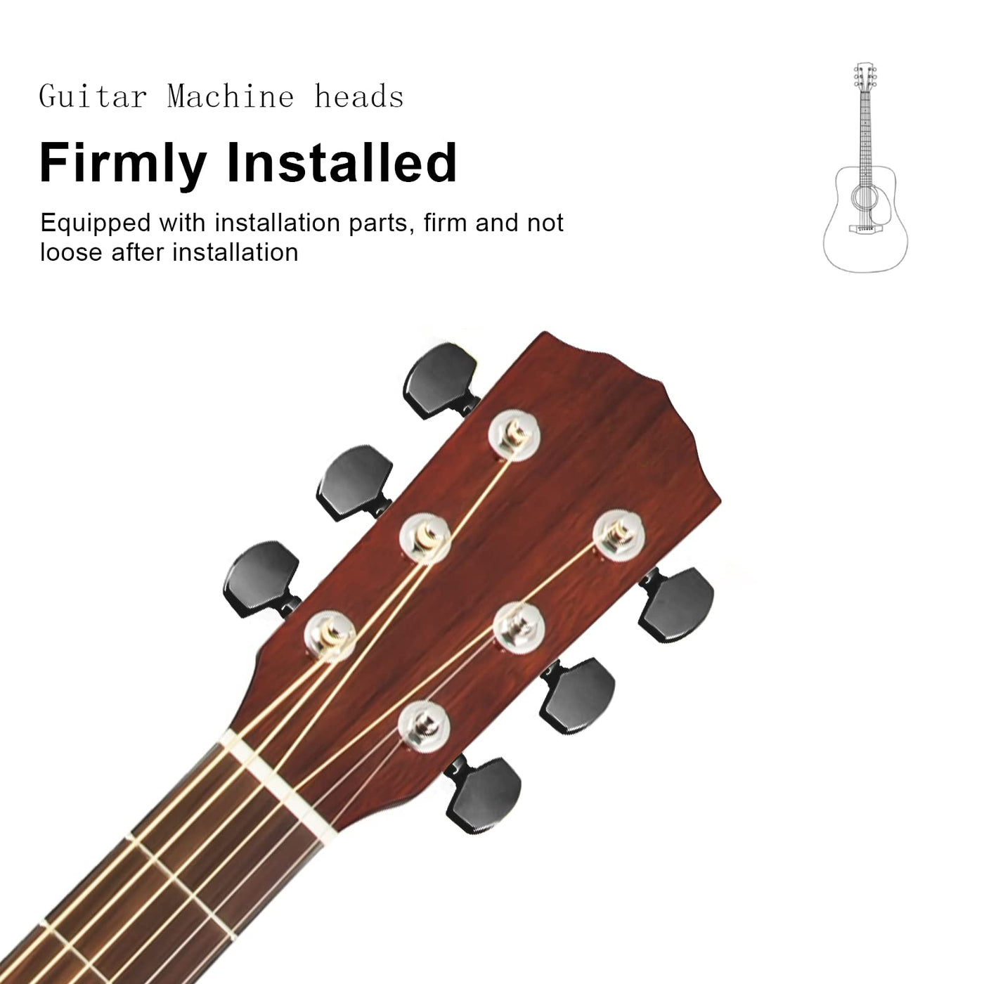 Saphue 3+3 Semi Closed Guitar Tuners String Tuning Pegs Keys Machine Heads Set For For Acoustic Or Electric Guitar (Black)