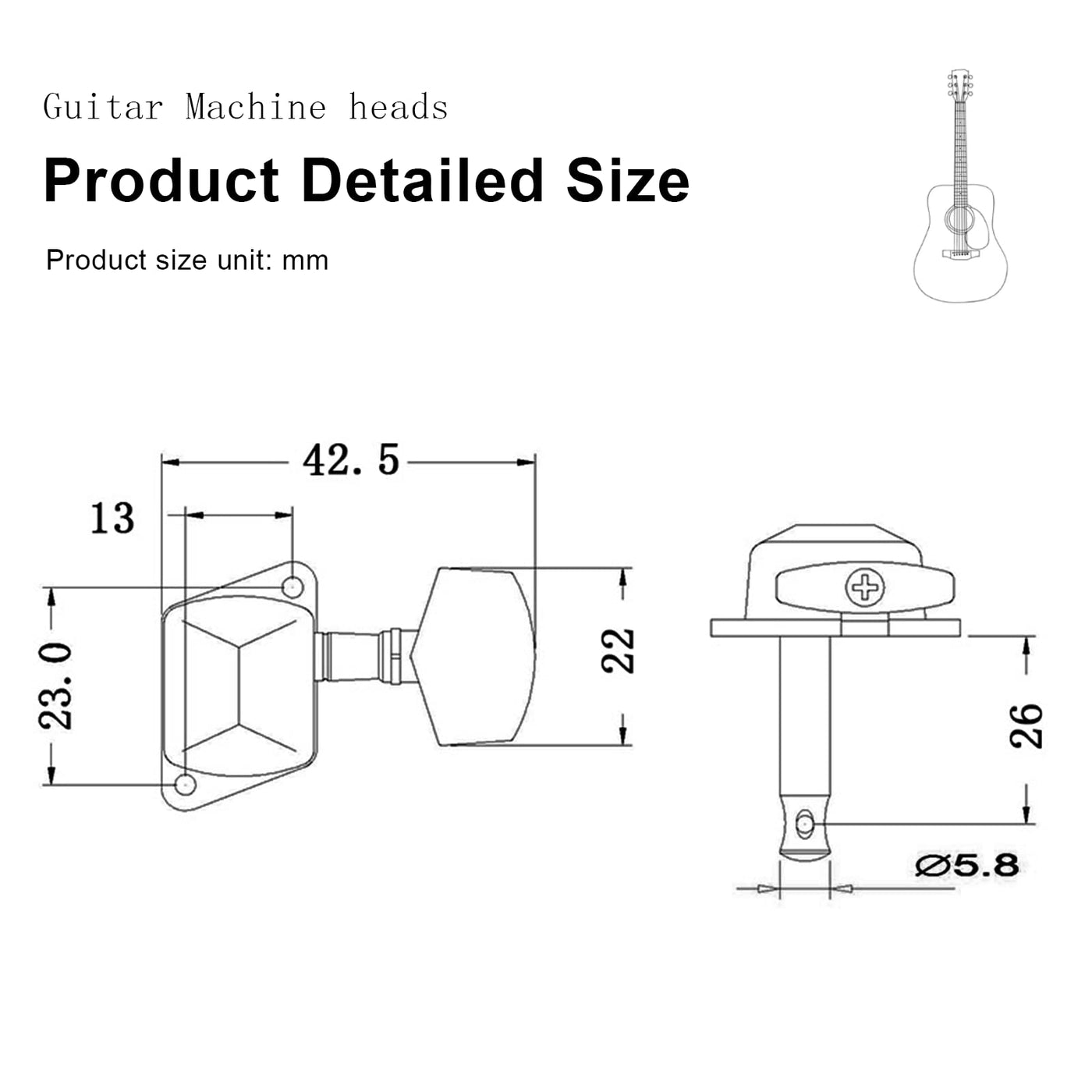 Description: 100% Brand New, Never Used Set Of 6 Quality Machine Heads For Guitars Complete With Vintage Push In Bushes & Screws Semiclosed Machine Heads Heavy Duty Internal Gear Black Finish Position: 3R3L Package Includes: 1 Set 6Pcs Guitar Machine Heads
