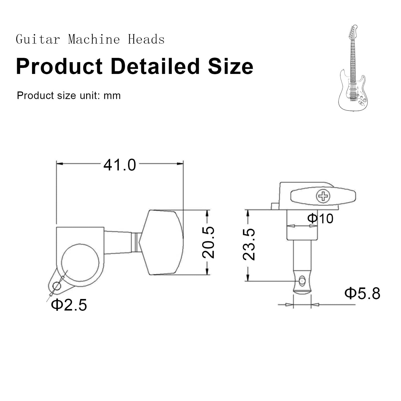 Specifications: 100 New High Quality And Testing Is Fine Heavy Duty Internal Gear Quality Sealed Machine Heads Material: Metal Colour: Black Location: 6R Gear Ratio:1:15 Mounting Screwsferruleswashers Included Package Included: 6Pcs Big Square Sealed Guitar Tuning Pegs