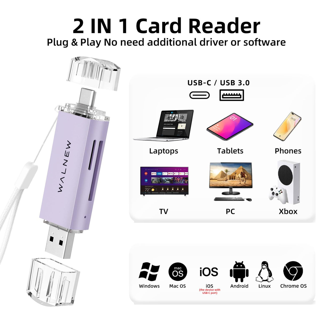 About Walnew Usb C Sd Carder: The Multiple Ports Tf/Sd Card Reader Is Suitable For Business People, College Students, Teachers Team Work In Requirements Of Reading And Writing Documents From Usb-C/Usb 3.0 Otg Devices. Features Of This Sd Card Reader For Pc: -Fast Speed Supports. Transfer Rates Up To 5Gbps, While Read Rated Up To 480Mbps At The Same Time. -Plug And Play. Without Power Source And Drivers Needs. Just Plug The Memory Card Reader Into Electronic Devices, Then It Starts To Work. -Slim And Lightweight Design.It Portable For You To Bring In Case. Compatibility List (Incomplete): Macbook Air (15-Inch, M2, 2023), Macbook Pro (2016 / 2017 / 2018 / 2019 / M1 2020/ M2 2022), Macbook Air (2018 / 2019 / M1 2020/ M2 2022 / 2023), Macbook (Retina, 12'', 2015 - 2017), Imac (2017 / 2019 / 2020), Mac Studio (2023), Mac Mini (2018 / 2020 / 2023), Mac Pro (2019 / 2023), Ipad Pro 12.9-Inch (6Th/5Th/4Th/3Rd Generation), Ipad Pro 11-Inch (4Th/3Rd/2Nd/1St Generation), Ipad Air (5Th/4Th Generation), Ipad (10Th Generation), Ipad Mini (6Th Generation), Samsung Galaxy Tab S9 S8 S7 S6 A8 A7, Galaxy S23 S22 S21 S20 S10 S9 Fe Ultra 5G, Note 20 10, A73 A54 A53 A52 A52S A23 A14, Z Flip/Fold 5 4 3, Dell Xps 17 15 13 Laptops, Vostro 16 15 14 13, Venue 8 Pro/ 10 Pro, Inspiron 17 16 15, Latitude Chromebook, Microsoft Surface Pro 9 / Pro 8 / Pro 7, Surface Go 3 2, Surface Laptop 5 4 3, Surface Laptop Studio, Surface Studio 2+, Surface Book, Google Pixel 7 7A / 6 6A / 5 5A / 4 4A, Google Chromebook, Pixelbook, Hp Chromebook, Hp Spectre13/Envy 13/Elitebook/Spectre/Envy X360, Acer Chromebook, Asus Zenbook 3/U4100/Rog/Chromebook Flip, Lenovo Chromebook, Lenovo Thinkpad, Ideacentre Aio Desktops, Yoga 9I 7I 7 920 720 -Suitable Otg Devices: Read Storage From Vehicle Dash Cam, Photography Camera -Compatible System: Windows 11/10/8/7/ Vista/Xp, Mac Os,Chrome Os, Linux, Android