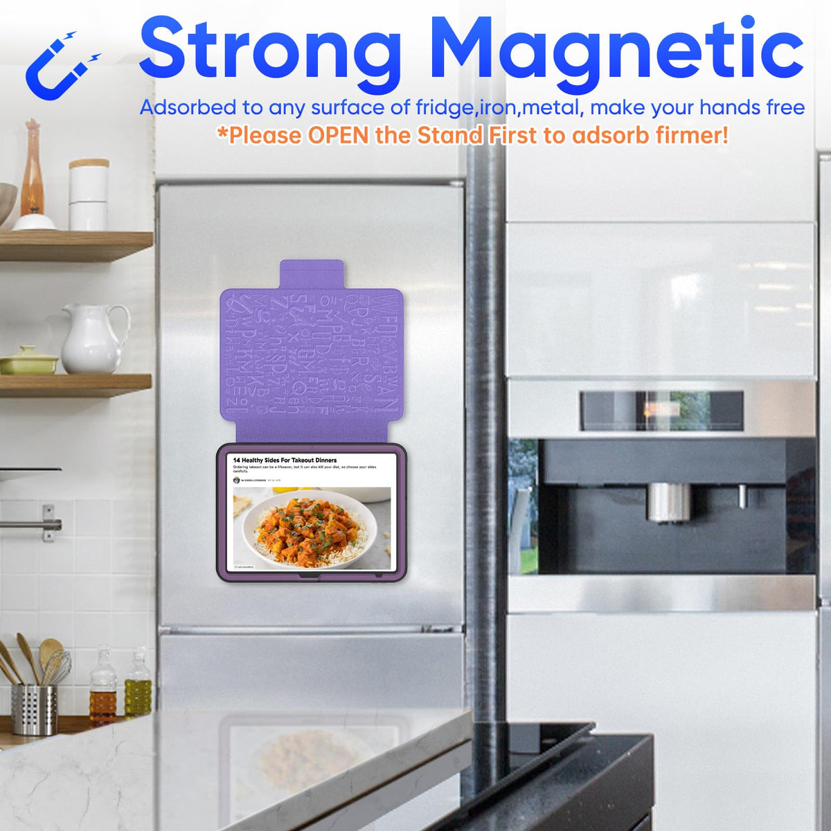 Q: Can I use the magnetic stand on metal surfaces?A: Absolutely! The magnetic stand can be attached to any fridge or iron surface, allowing for hands-free usage while you work or watch videos.