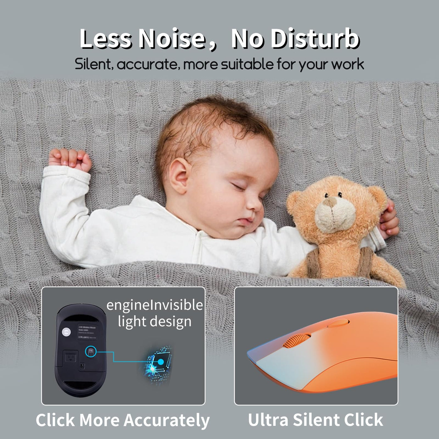 Q: Does this mouse have a silent click feature?A: Yes, the SHUNJINRUN Wireless Mouse is designed with a silent click feature for both the left and right buttons. This makes it ideal for use in quiet environments like libraries, offices, and dormitories, allowing you to work without disturbing others.