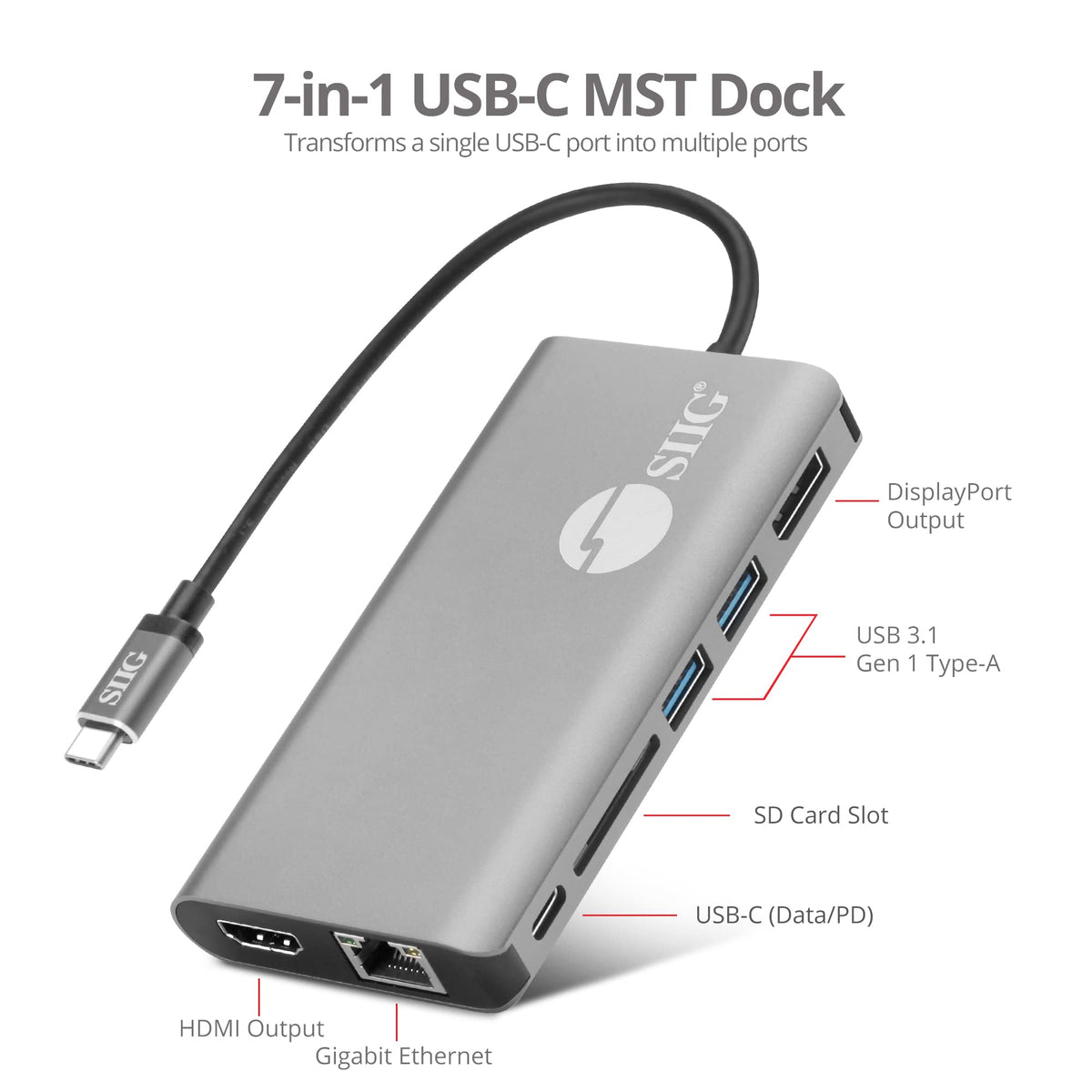 Siig Usb C Mst Dual Display Docking Station Video Adapter For Windows, Not For Macos [Single 4K, Dual 1080P], 100W Pd, 2 Usb 3.0