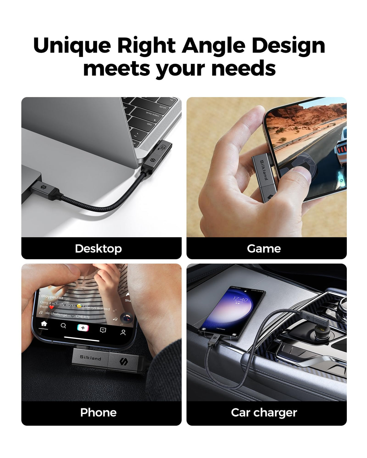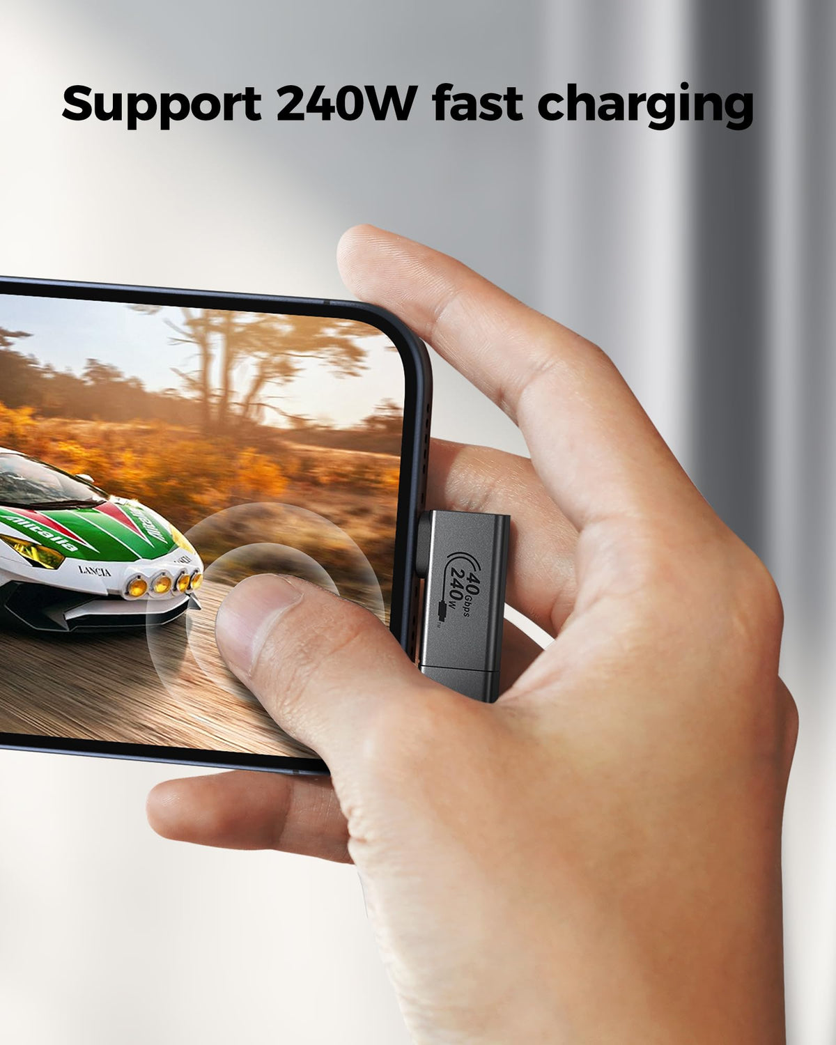 Silkland 90 Degree Usb C Right Angle Adapter 2 Pack, 240W 40Gbps Male To Female Usb C Adapter Extender Compatible With Thunderbolt 4/3 For Steam Deck, Rog Ally, Macbook, Switch, Iphone 16/15, Quest 3