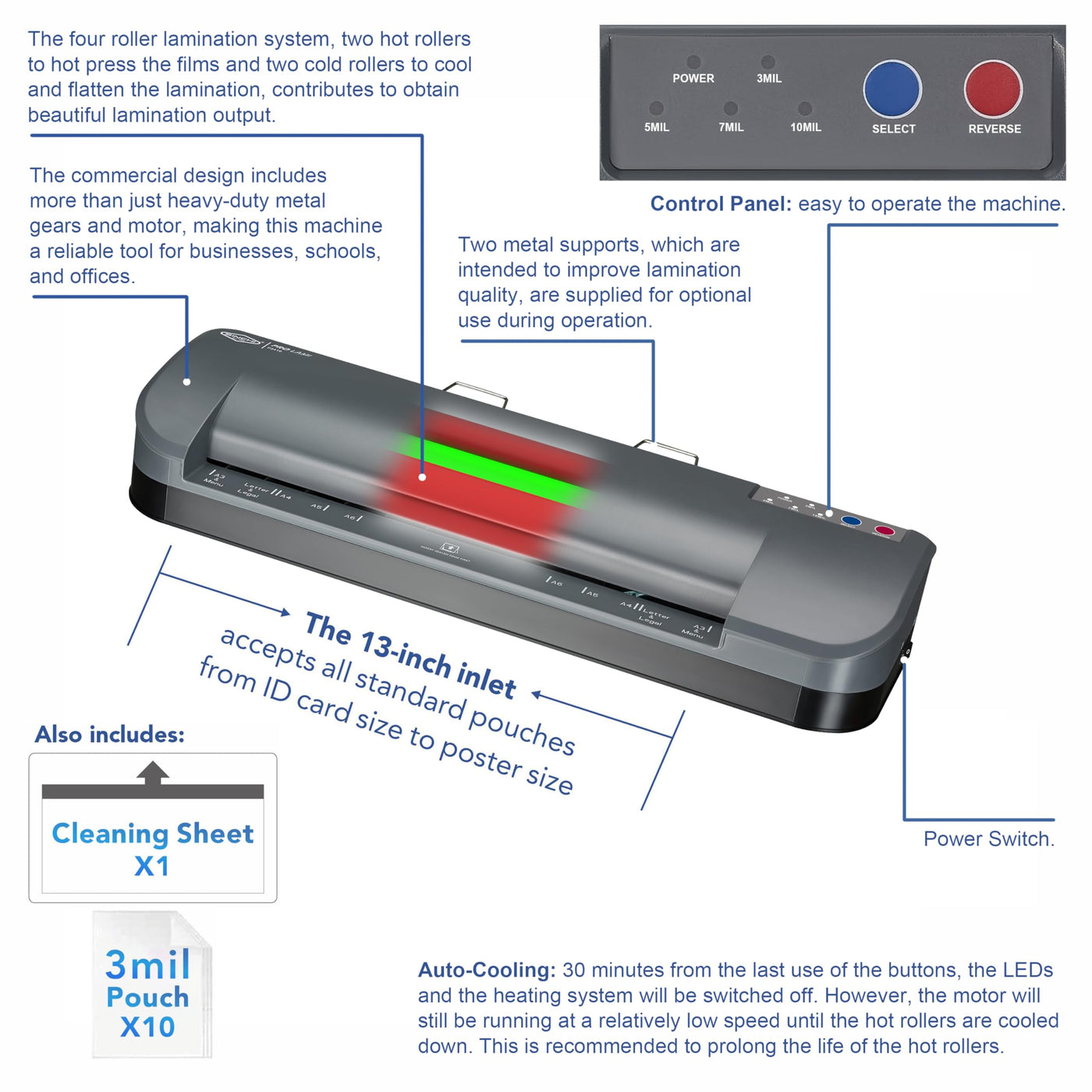Sinchi 3 10 Mil, 13 Inch Commercial Laminating Machine With Laminating Sheets, 55 Second Warm Up & 40 Inches/Minute Thermal Lami