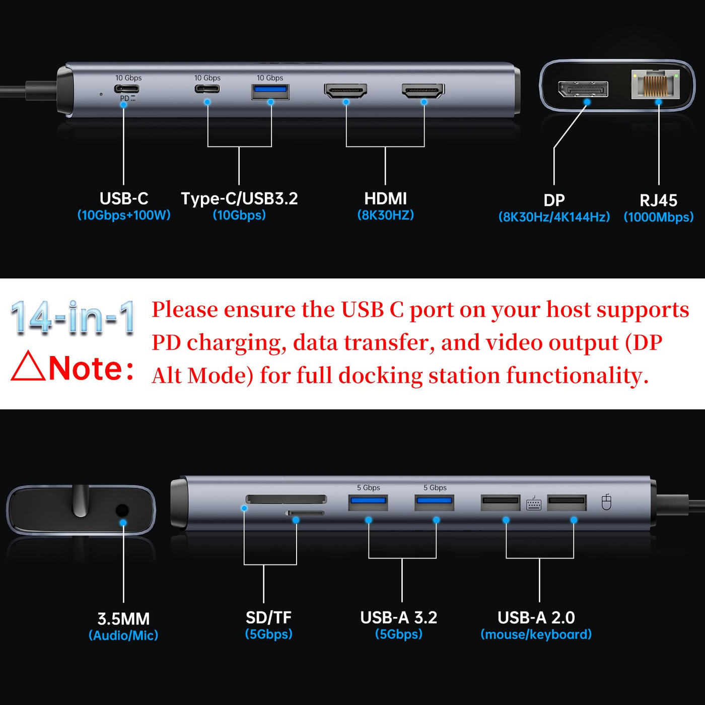 ?Universal Compatibility?Please Ensure That The Usb-C Port On Your Host Device Supports Pd Charging, Data Transfer, And Video Output (Dp Alt Mode) To Enjoy The Full Function Of This 14-In-1 Laptop Docking Stations.