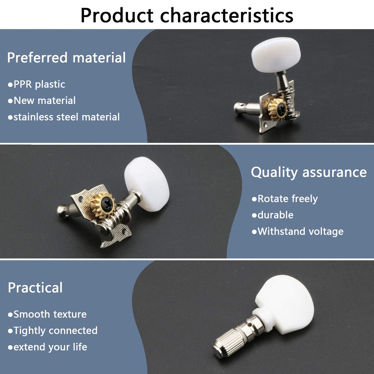 Specification: 100% Brand New, Never Used This 5Pcs/Set Banjo Machine Head Tuning Peg/Key Is Great Banjo Accessory Includes 4Pcs Right Machine Heads And 1 Pcs Banjo Non Slip Peg Material: Zinc Alloy And Celluloid Color: White And Silver Outside Diameter Of Bush: 6Mm /0.236Inch Bush Height: 27Mm / 1.06Inch The Fixing Screw Holes - Centre To Centre: 24.55Mm / 0.967Inch Package Includes: 4 X Banjo Right Machine Head Tuning Peg/Key 1 X Banjo Non Slip Peg