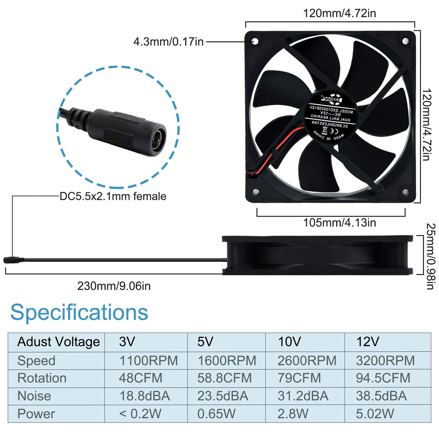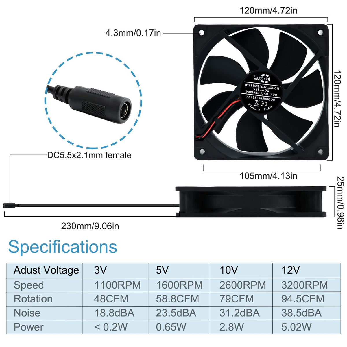 This 120Mm Case Fan Is Popular In A Variety Of Electronics And Components; With Adjustable Power Adapter Can Set The Fan Speed Easily To Optimal Noise And Airflow Levels For Various Applications And Noise Environments. Perfect For Projects That Requires Cooling Or Ventilation; Such As Dry Box, Grow Tent,Indoor Plant Room, Fridge, Incubator, Biltong Box, Bbq, Aquarium, Kegerator, Closet, And More. Or As A Replacement Fan For Various Products. Widely Used For Xboxs, Playstations, Rokus, Receivers, Rokus, Modems, Routers, Dvrs, Video Game Consoles, Computers, Amplifiers, And Other Audio-Video Equipment.