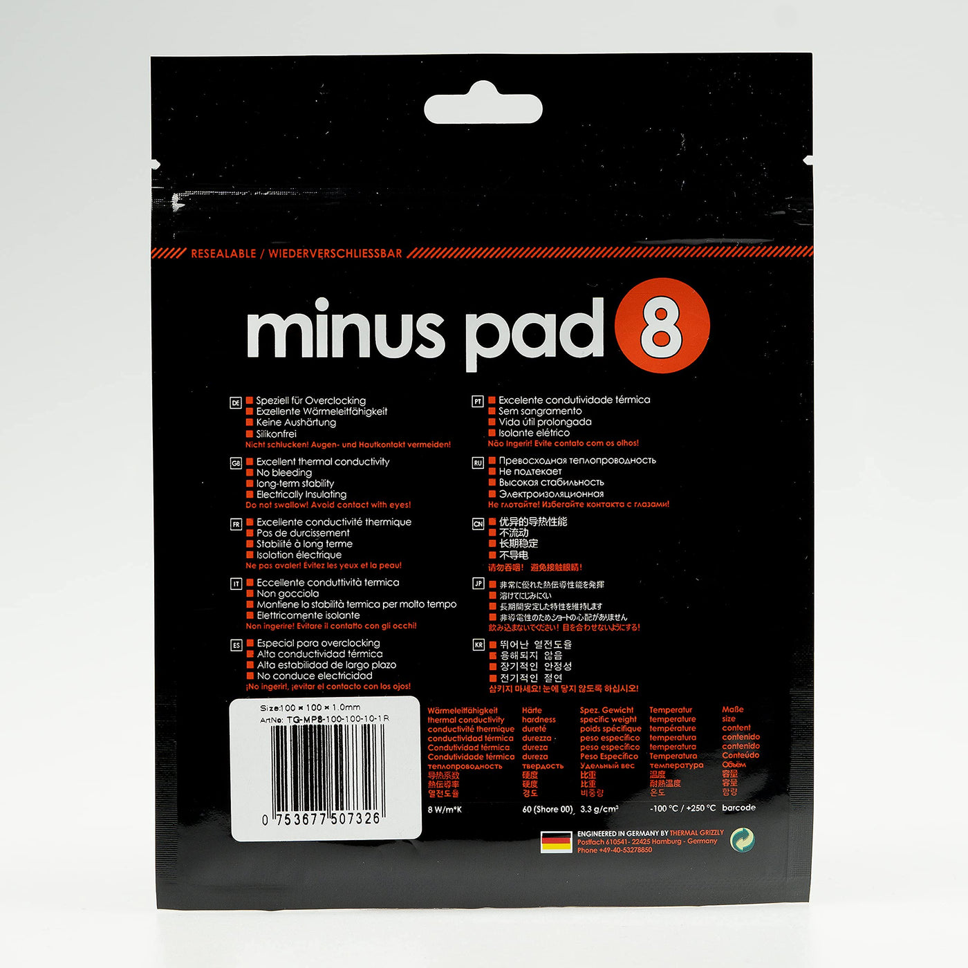 Thermal Grizzly Minus Pad 8 (100X100X1,0Mm) Self Adhesive Cooling Conductive Thermal Pad Elastic And Adaptable Silicone Thermopad Cpu/Gpu/Ps4/Ps5/Xbox