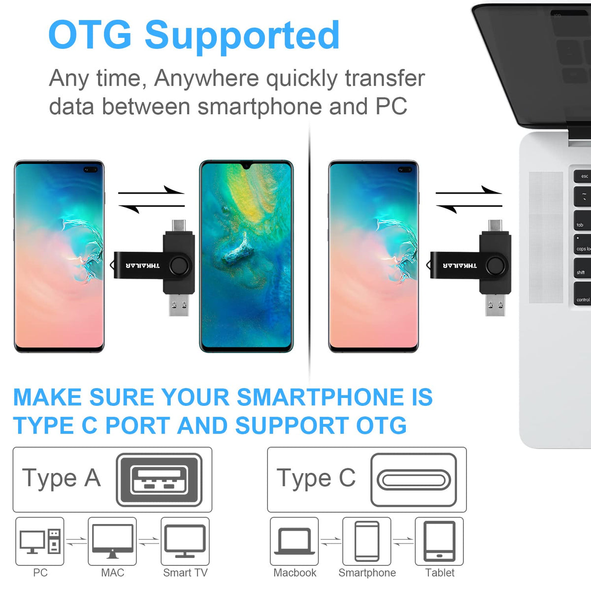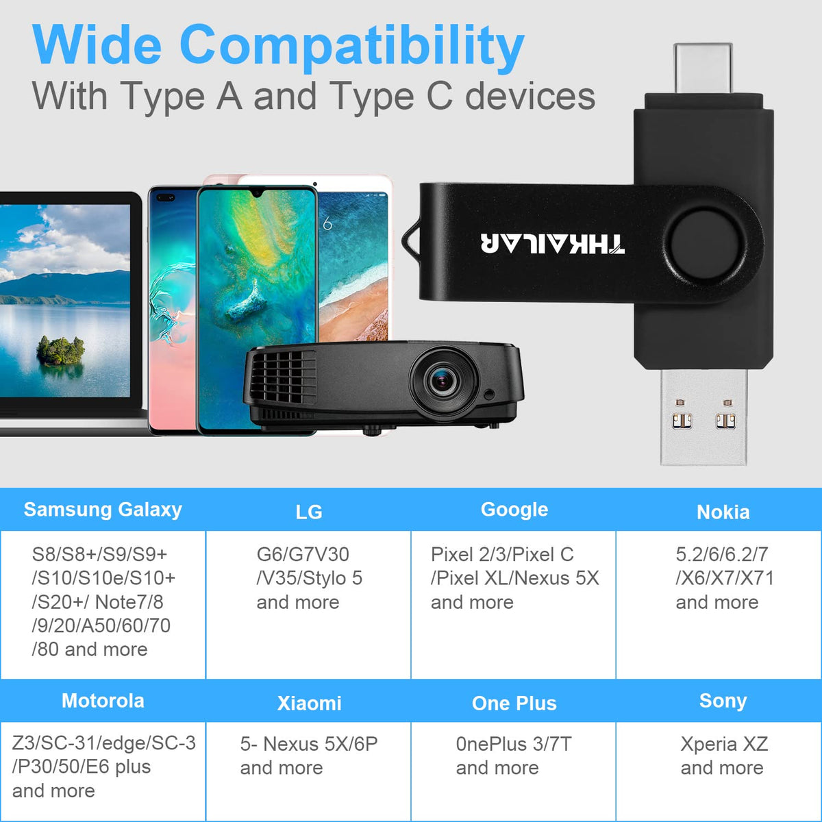 Thkailar 256Gb Usb 3.1 Flash Drive 2 In 1 Usb C Flash Drive Compatible With Android Phone Pc Galaxy Mac Pro Laptops Pc High Spee
