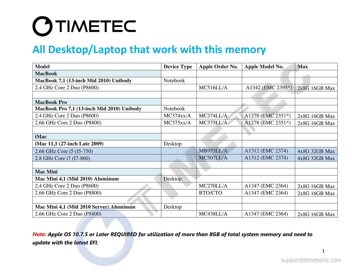 Timetec - Memory Of A Lifetimecompatible With (But Not Limited To):*Please Click Image For More Compatible Systems Modelneed To Know If This Part Is Compatible?Contact Us With Manufacturer And Model Information Of Your Motherboard