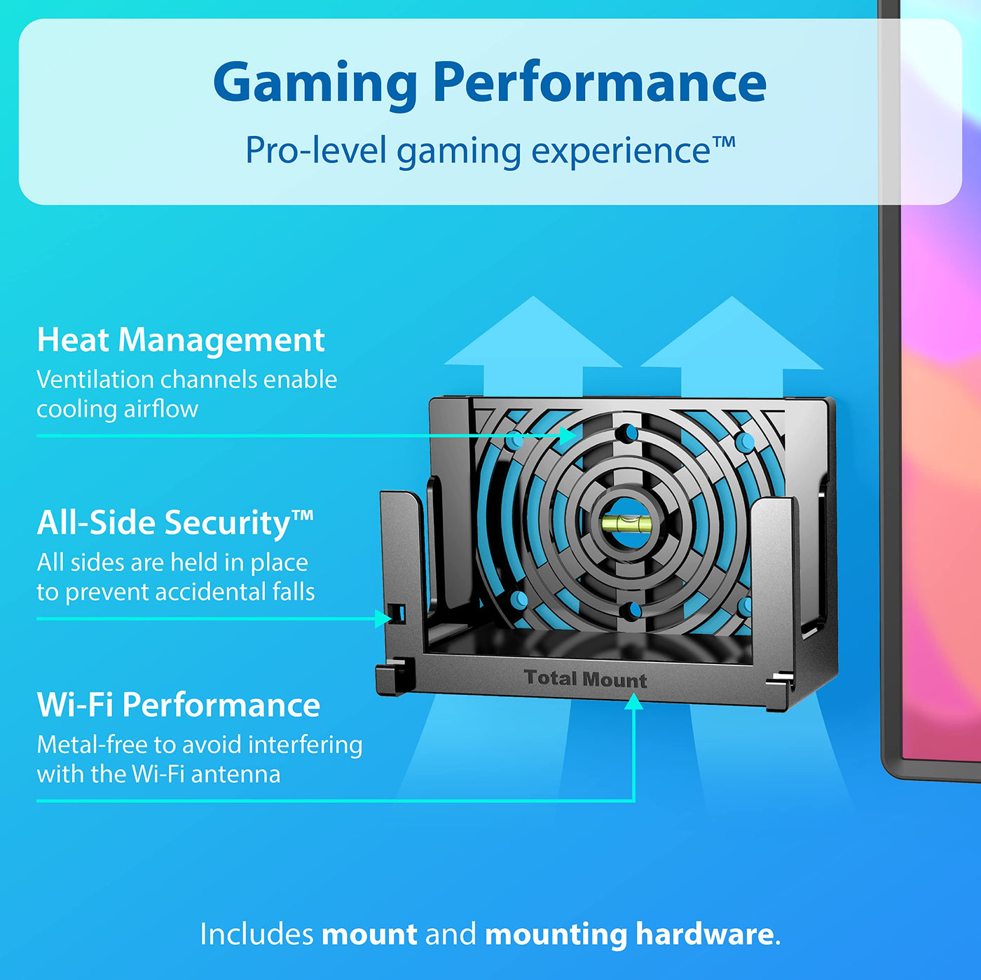 Total Mount Securely Mounts Your Nintendo Switch To The Wall Or Furniture Near A Power Outlet. The Mounting System Includes Everything Necessary To Quickly Mount Your Device, In Most Cases Without Having To Use A Drill. In Just A Couple Of Minutes, Your Station Will Be Safely Mounted And Ready For Maximum Performance.
