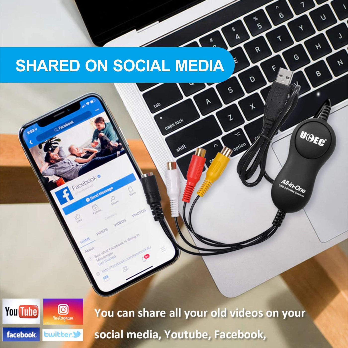 Ucec All In One Video Capture Usb 20 Vhs Vcr Tv To Dvd Converter For Mac Os X Pc Windows 7 8 10, Upgrade Edition All In One Solution Videotapes Can Deteriorate Over Time, Your Old Videos Will Have Color Bleed, White Specks, And Other Distortions, Dont Risk This Happening To Your Home Video Collection Description: Digitize Video From A Vcr, Camcorder And Other Analog Video Sources For Playback On Your Mac, Pc And Ipad Transfer Video To Your Mac Or Pc From A Vcr, Dvr, Camcorder, Or Any Other Analog Video Device Ucec All In One Video Captureas Is Easy To Use, Having Software Assists You Through Every Step, From Connecting An Analog Video Device To Capturing Video And Choosing How You Will Watch And Share It Package Incluide: 1 X Disc (Include 2 Softwares) 1 X Composite Connection 1 X User Manual Compatible For: Pc Window 7,8,10 Mac Os X 104 Or Later