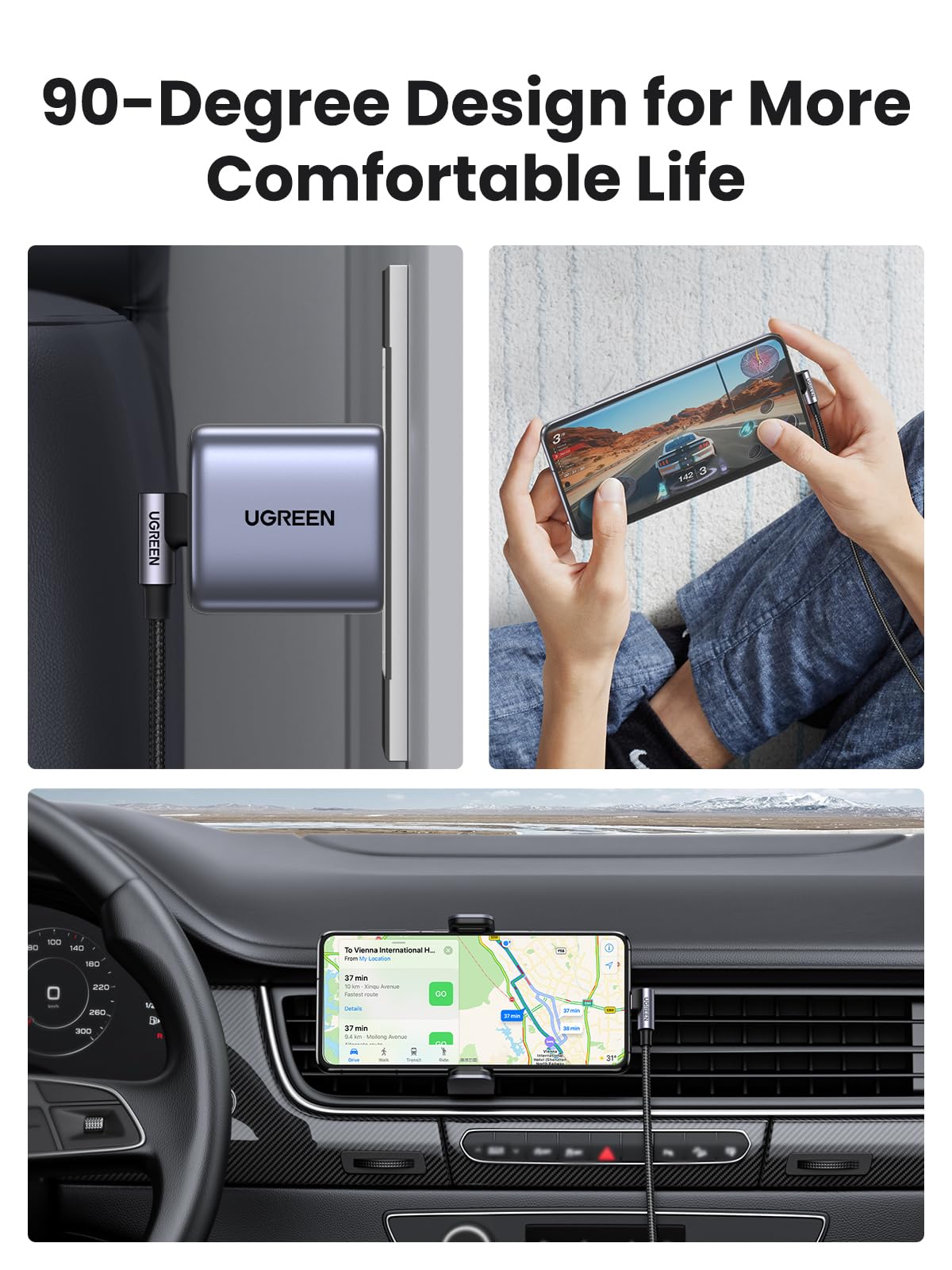 Right Angle Usb Type C Cable: Ugreen Usb-C To Usb-C Cable With An Innovative 90 Degrees L Design, Is Much More Convenient And More Comfortable For Playing Games, Watching Videos, Reading E-Books When You Lie On The Couch Or Bed While Charging. Max 60W Usb C-C Cable: Fast Charging Your Usbc Laptops Or Smartphones At Max 20V 3A Current, Ugreen Usb-C Charging Cable Supports Usb Power Delivery Pd Charge. Broad Compatibility: Ugreen Usb C Cable Is Compatible With Ipad Mini 6, Ipad Air 4, Ipad Pro 2021/2020/2018, Macbook 12'' 2018/2017/2016/2015, Macbook Pro 13'' 2020/2019/2018/2017/2016, Macbook Air 13'' 2021/2020/2019/2018, Samsung Galaxy Note 20/Note 20+/Note 10/S21/S20/S10, Z Flip 3/Z Fold 3; Google Pixel 2/3/3A 4 Xl, Nintendo Switch, Lg G7 Thinq G5 G6 V20 V30 V40 V50, Huawei Matebook X Pro, Google Chromebook Pixel, Dell Xps 13 And Other Type C Cable Devices. Bulit To Last: Nylon Braided Cable Ensures Reliability And Durability. Double-Sided Usb C Connectors With Overmolded Strain Relief Designed For Frequent Plugging And Unplugging, Provide A Charger Cable With Reliable Performance And Longer Lifespan. Useful Usb C Data Cable: Comply With Usb 2.0 Type C Standard, Ugreen Usb Type-C To Usb Type-C 2.0 Charger Cable Can Connect Usb-C Enabled Cell Phones To Type C Computers Or Laptops For Data Transfer At Max 480 Mbps.