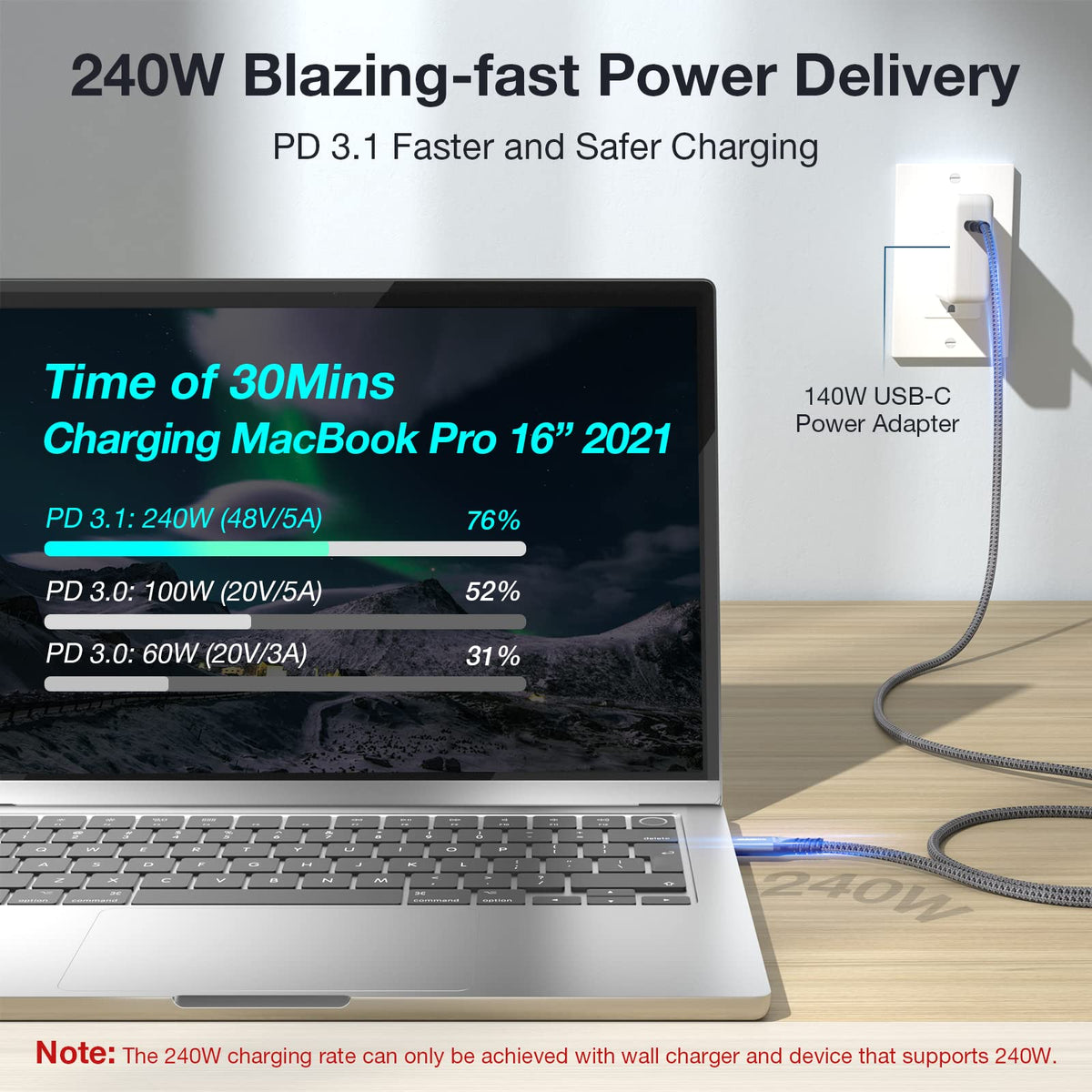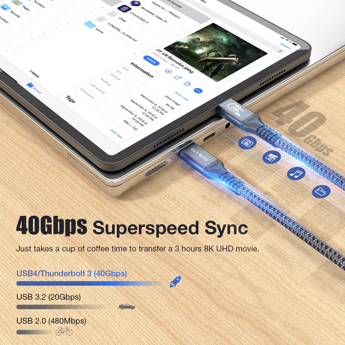 Ult Wiiq Usb4 Cable For Thunderbolt 4 Cable 40Gbps High Speed Data Transfer 240W Pd 3.1 Usb C To Usb C Cable Fast Charging 8K/6K@60Hz Usb 4 Cable For Iphone 15 Pro Macbook Egpu Docking Gan Ssd 1Ft