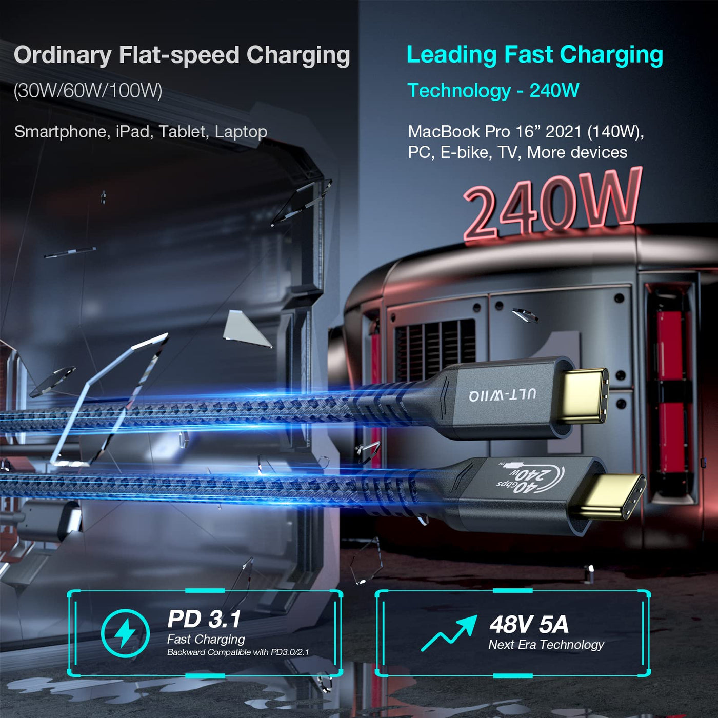 Ult-Wiiq Usb4 Cable For Thunderbolt 4 Cable 40Gbps High Speed Data Transfer 240W Pd 3.1 Usb C To Usb C Cable Fast Charging 8K/6K@60Hz Usb 4 Cable For Iphone 15 Pro Macbook Egpu Docking Gan Ssd 6.6Ft