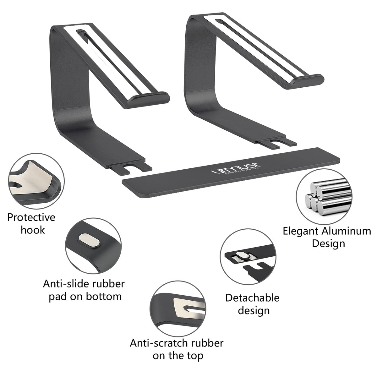 Urmust Laptop Stand For Desk Aluminum Computer Stand For Laptop Riser Holder Notebook Stand Compatible With Macbook Air Pro, Dell, Hp, Lenovo Samsung, Alienware All Laptops 11-15.6'' ?Anti-Slip Rubber Protector Anti-Slip Silicone Rubber Pads On The Top Prvent Your Laptop From Being Scratched And The Bottom, Keep It In A Position And Not Move. ?Ergonomic Design This Laptop Stand Could Elevate Your Laptop By 6'' To A Perfect Viewing Level, Help You Improve Your Posture And Reduce Neck And Shoulder Pain. ?Heat Dissipation Forward Tilt And The Open Style Design Allows For Best Airflow For Your Laptop, No More Worry About The Overheating. ?Wide Compatibility Compatible With All Laptops From 10''-15.6'', Support Up To 4.4Kg. Such As Apple Macbook 12 / 13, Macbook Air 13, Macbook Pro 13 / 15 / 2018 / 2017 / 2016, Lenovo Thinkpad, Dell, Hp, Asus, Chromebook,All Tablet & Ipad And Other Notebooks.?Keep Your Laptop Safe And Organize Your Desk This Laptop Riser Keeps Your Computer From Water Coffee Or Juice; And You Could Put Your Laptop Accessories Under The Stand, Such As Mouse And Keyboard, Book, Make Your Desktop Much Tidy And Neat.Specification ?Size: 260*220*142 Mm ?Net Weight: 840 G ?Material: Aluminium Alloy