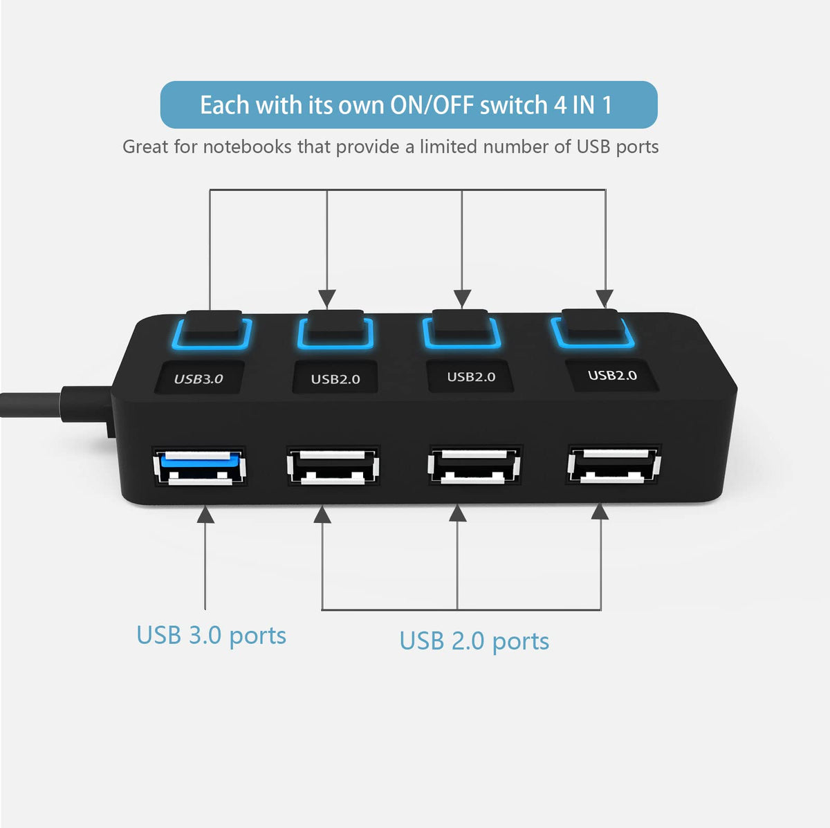 Usb 3.0 Hub,4 Port Mini Usb Hub 3.0,2.0 Hub With Individual Led Power Switches,Usb Expander For Laptop,Pc,Macbook,Flash Drive,Console, Printer,Camera,Keyborad,Mouse,And More Usb Devices