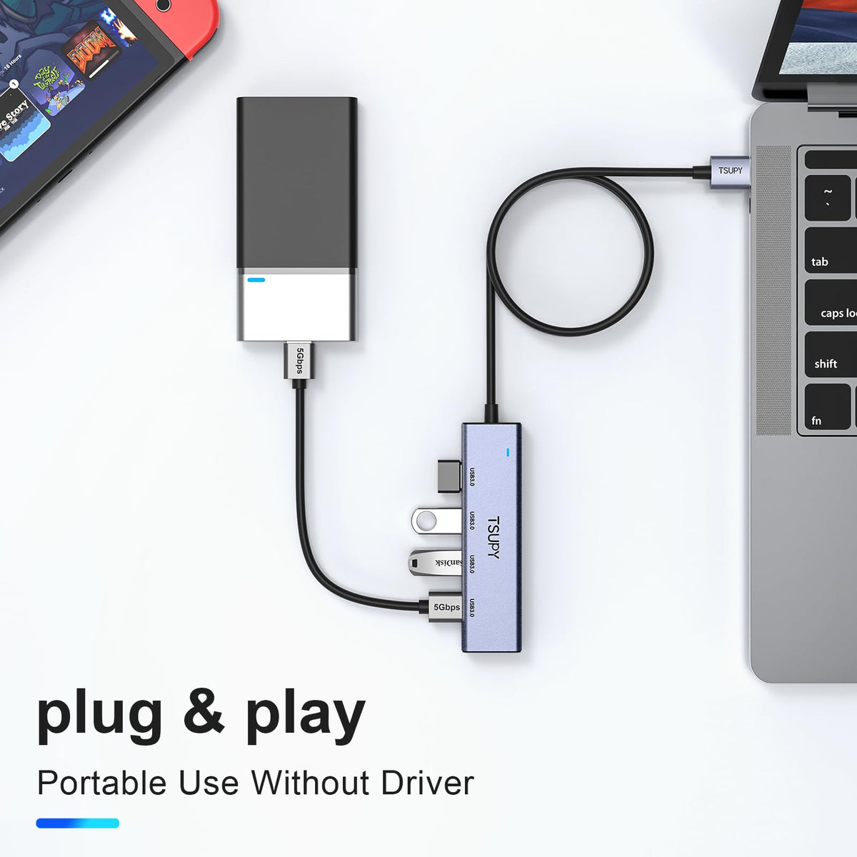 5Gbps Usb 3.0 Hub, Alloy Case More Durable Than Plastic. The Usb 3.0 Hub With Usb C Charging Port, This Only For Power The Hub, Not For Charging Pc.