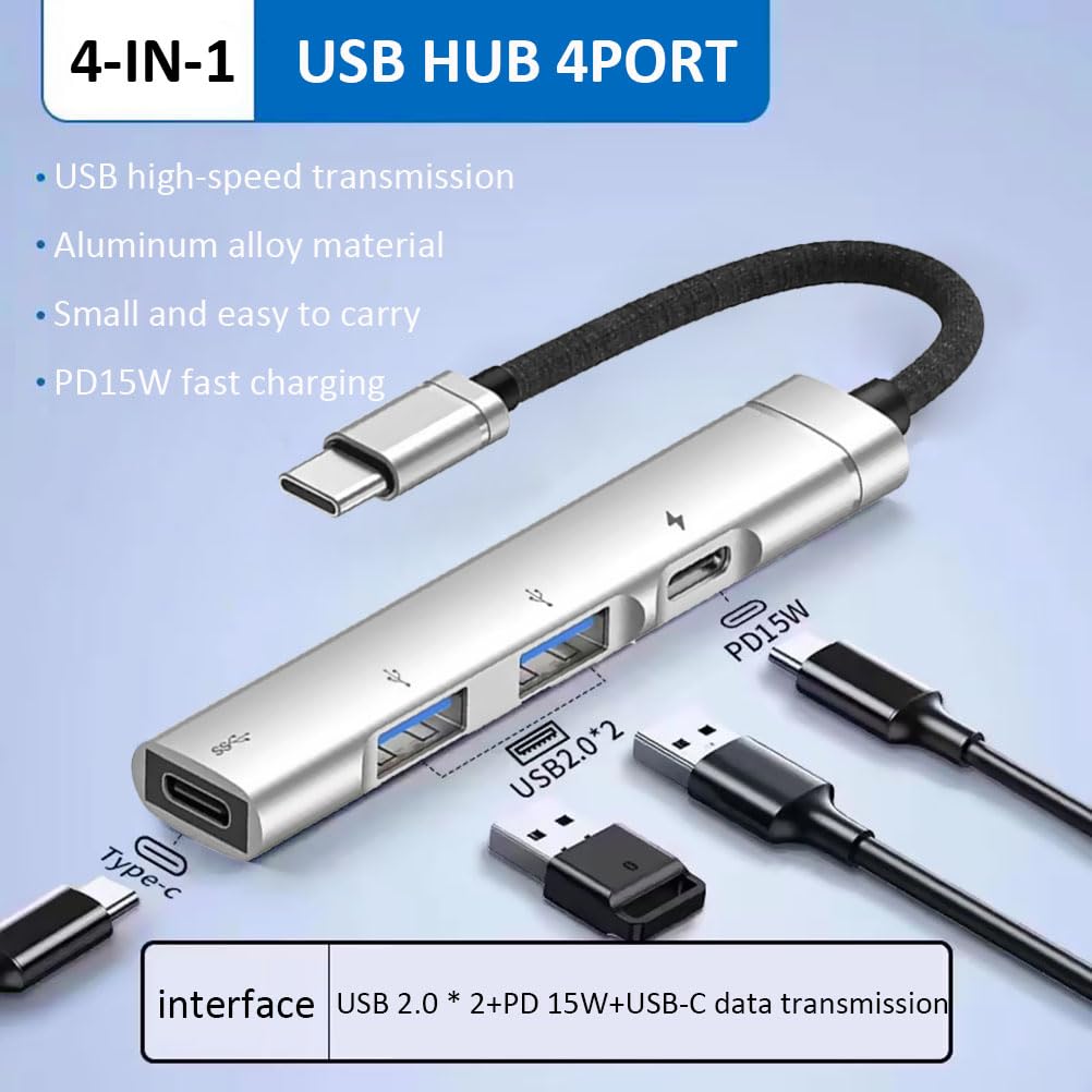 Usb C Hub 3.0 4 Port, Usb Multiple Hub Data Splitter Extender With Usb C Power/Data Port, For Macbook Pro/Air, Foriphone15/Pro/P