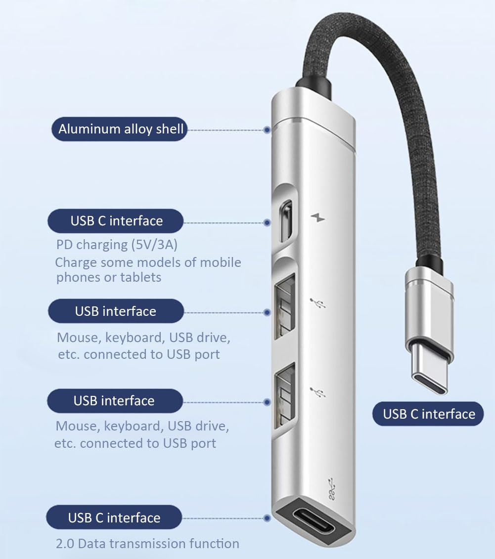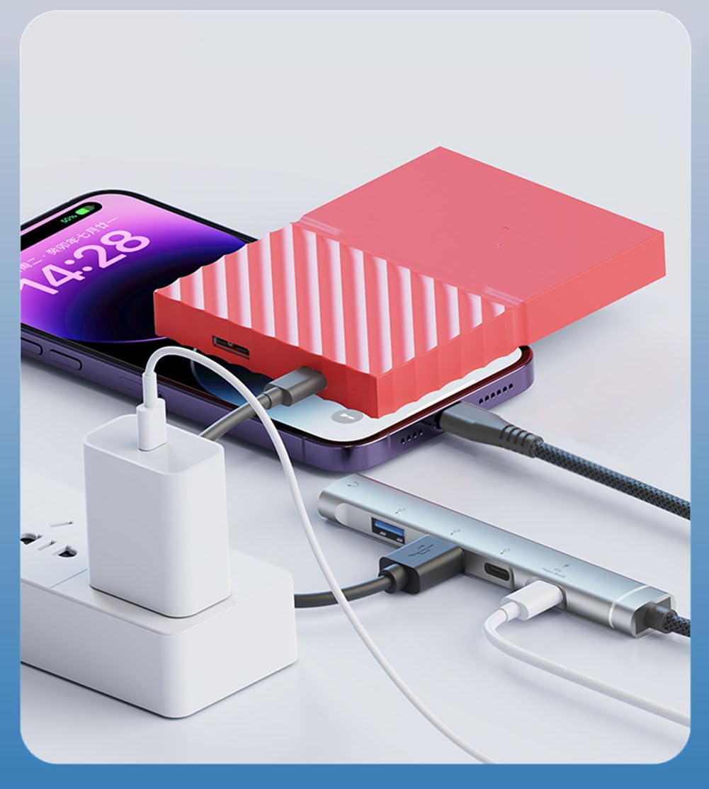 5Port Usb C Hub Interfaces Reasonable Interface Layout, No Interference With Each Other, Multiple Ports Fully Loaded, Supporting Simultaneous Connection Of 5 Ports, No Driver Required, Plug And Play Lightweight Design Easy To Carry, Compact, Practical, And Convenient Durable And Sturdy Shell, Anti Slip And Wear-Resistant, Seven Sets Of Usb Ports With Hot Plugging Function, Maintaining Stable Transmission