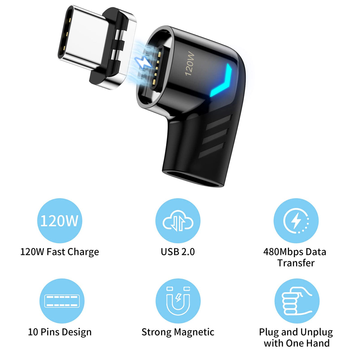 Usb C Magnetic Adapter,(2 Pack) Magnetic Usb C Adapter,Pd 120W Fast Charge,480Mbps Transfer Speed,Compatible With Macbook,Usb C