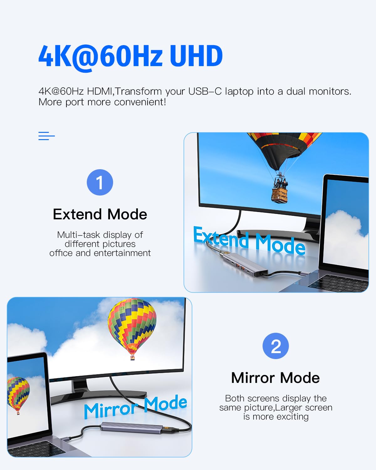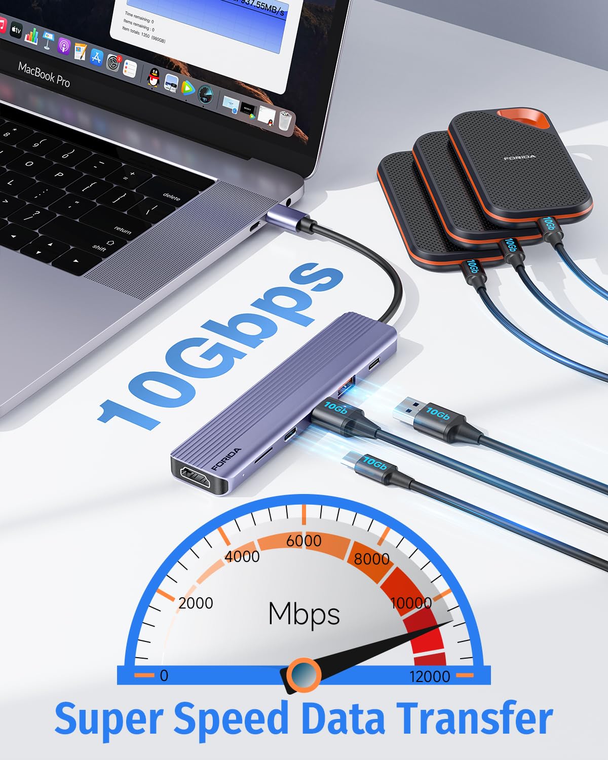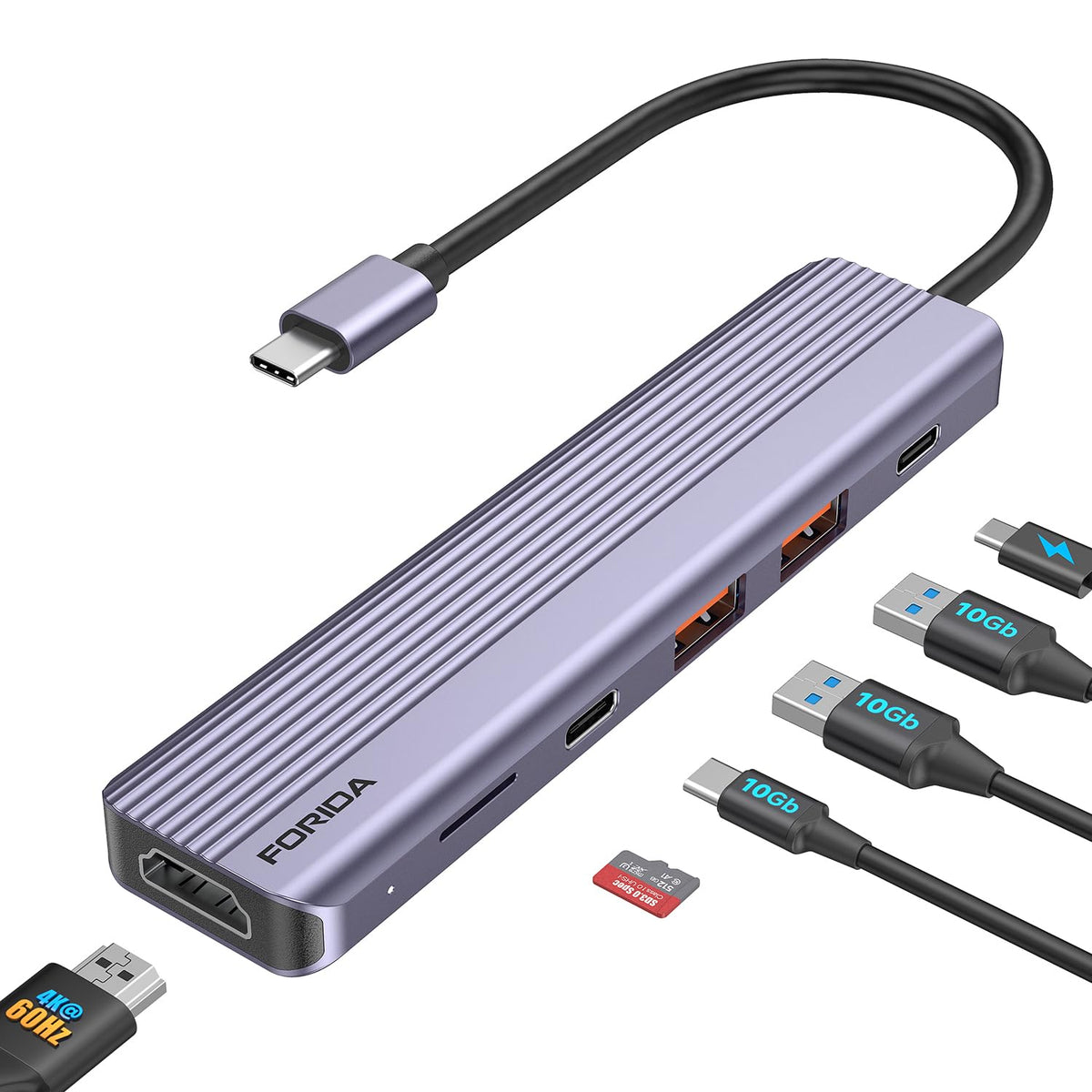 Tech Specification: Forida Ultra Slim Multiport Usb C Hub Adapter-Expand More Usb Ports! 1 * 4K@60Hz Hdmi Port 1 * Usb C 3.2 Ports: With 10Gbps Fastspeed Data Transfer Rate Output 2 * Usb A 3.2 Data Ports: Support10 Gbps Data Transfer 1 * Pd Charging Port:Up To 100W Of Charging Power Prevents You From Being Troubled By Low Battery Levels 1 *Micro Sd Crard Reader Slot: Transfer Speed Up To 104Mb/S. All In One Docking Station Use The Same Heat Dissipation Technology As Macbook Pro To Extend The Working Life And Provide A Excellent Performance. Make It Safe And Reliable When Multiports Are Occupied. A Stylish And Portable Companion For Your Usb C Laptops/Phones. Safer And Durable Using Exclusive Multi-Protection Systems Ensure Over-Current Protection, Over-Voltage Protection, Short Circuit Protection And High-Temperature Protection. Broad Compatibility The Type C To Hdmi Adapter Is Compatible With The System: Mac Os/Windows Xp/7/8/10/Chrome Os/Android, Etc. Work With The Host With Video Output Function *Dp Alt Mode* And Usb4/Thunderbolt 3/4. Suitable For Apple Macbook Pro 2016-2024, Imac 2017-2024, Macbook Air 2018-2024, Ipad Pro 2020-2024, Surface Book 2 / 3, Surface Laptop 3, Dell Xps 15/13, Hp Chromebook X360, Samsung Galaxy S21/S20/S10/S9/S8, Note 10/9/8, Lg V40 And More. Note The Charging Port Of This Product Is Set At The Bottom, And The Type C Data Transmission Port On The Side Cannot Be Used For Charging.