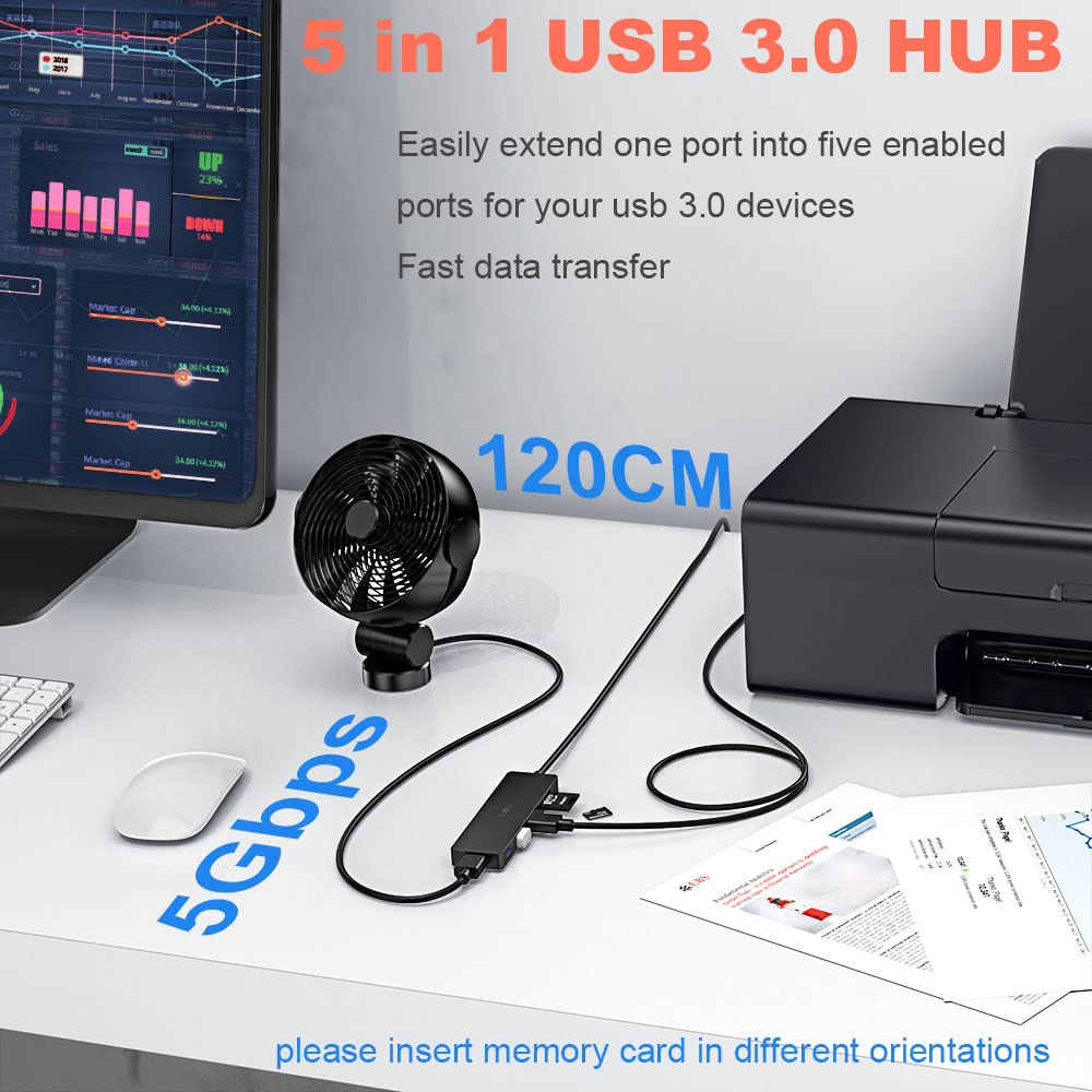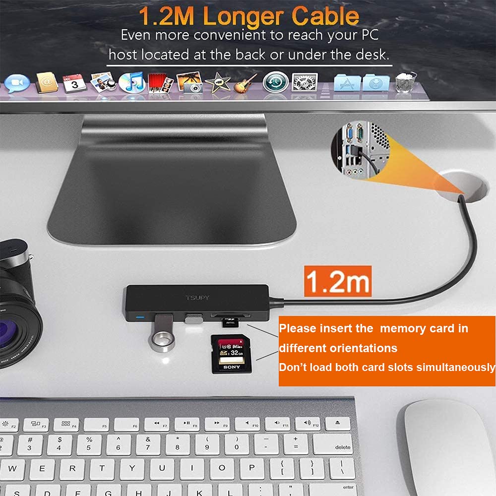 Usb Hub 3.0 Splitter, Tsupy Usb 3.0 Hub Multi Usb Adapter Port Expander With 4Ft Cable, Sd/Tf Card Reader & 3 Usb 3.0 Ports Compatible For Pc, Laptops, Surface Pro, Macbook, Imac Pro