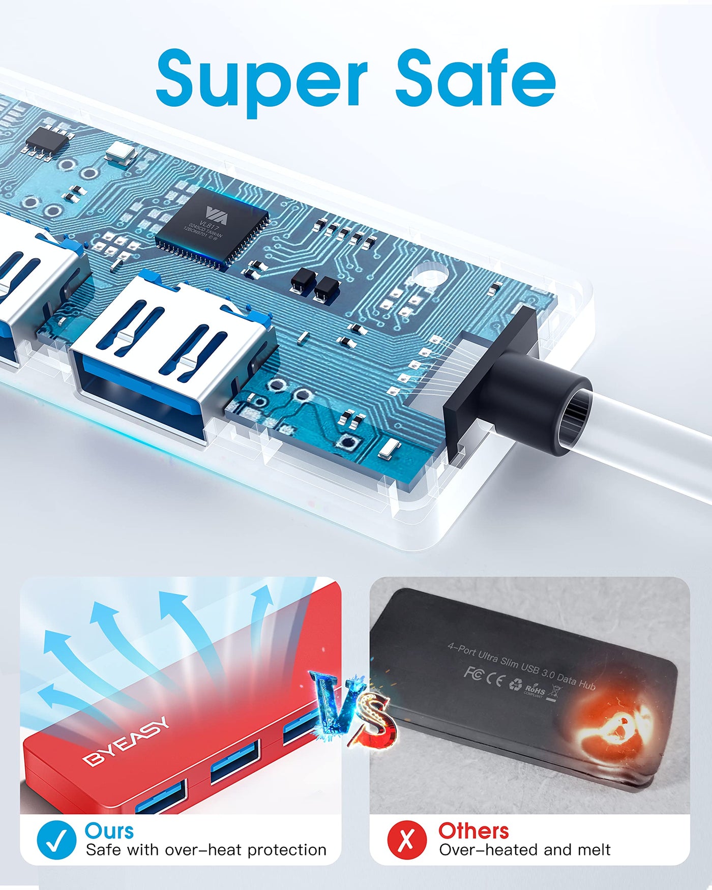 Usb Hub: Instantly Add Four Usb 3.0 Ports To Imac, Macbook, Mac Pro / Mini, Surface Pro, Xps, Notebook Pc, Mobile Hdd, And More.Note: This Hub Is Not For Charging Devices Because It Supports An Output Max Current Of Only 900Ma.Charging Very Slowly | Ultra Slim & Advanced Chipset: Advanced Chipset With Good Thermal Design, Will Not Heat Even If Used For A Long Time | High-Speed Data Hub: Supports Transfer Speeds Up To 5Gbps (Usb 3.0), 480Mbps (Usb 2.0), And 12Mbps (Usb 1.1). Note: This Hub Support Output Max Current Up To 900Ma.So Some Hdds That Need A Current Of More Than 900Ma Need An External Power Adapter | Great Compatibility Laptop: Compatible With Windows 10/8/8.1/7 / Vista / Xp And Mac Os X, Linux, And Chrome Os ( The Usb 3.0 Hub Reverse Compatible Usb 2.0 And Usb 1.1.) | Package Contents: Byeasy Uc-109 Usb 3.0 Hub Four Ports, User Manual