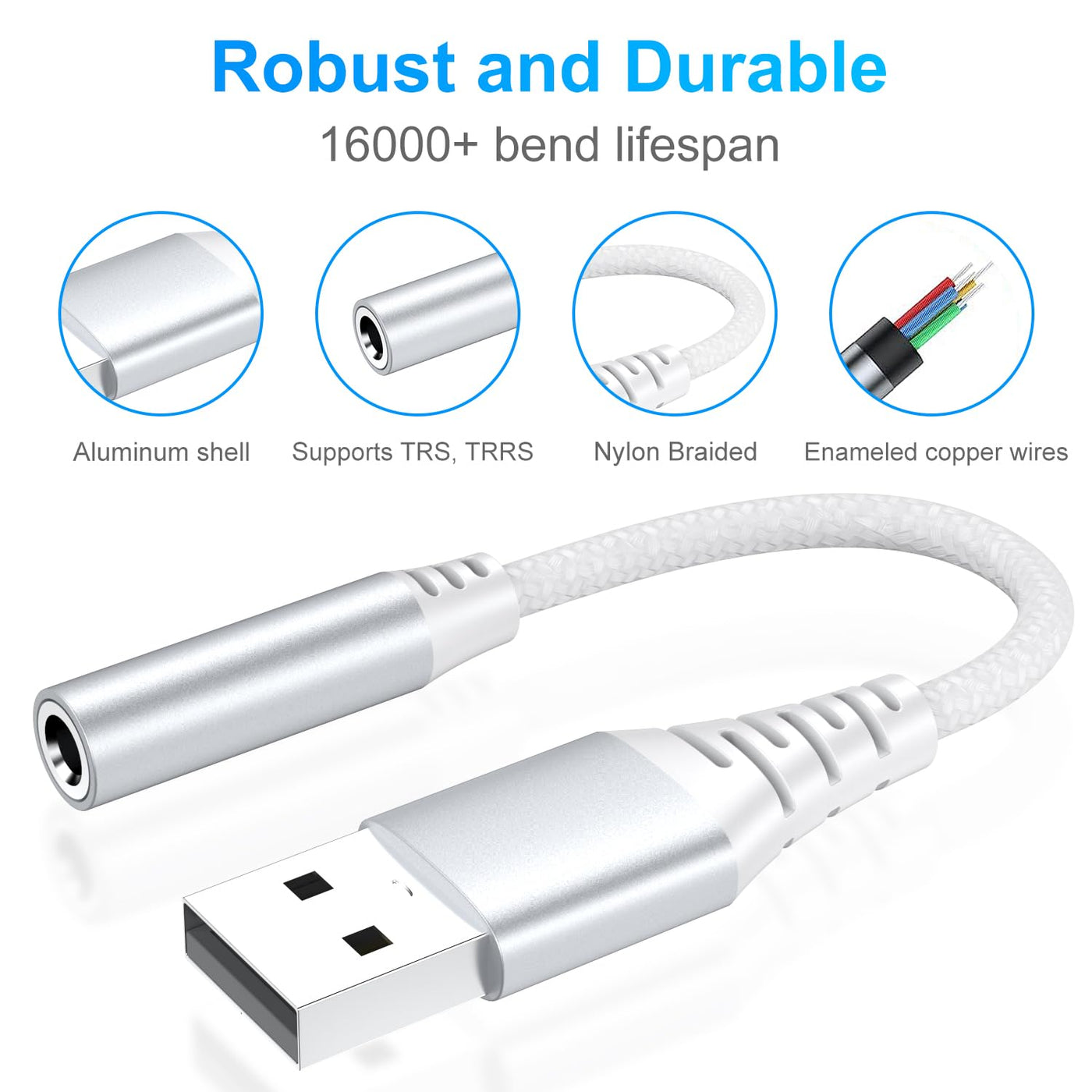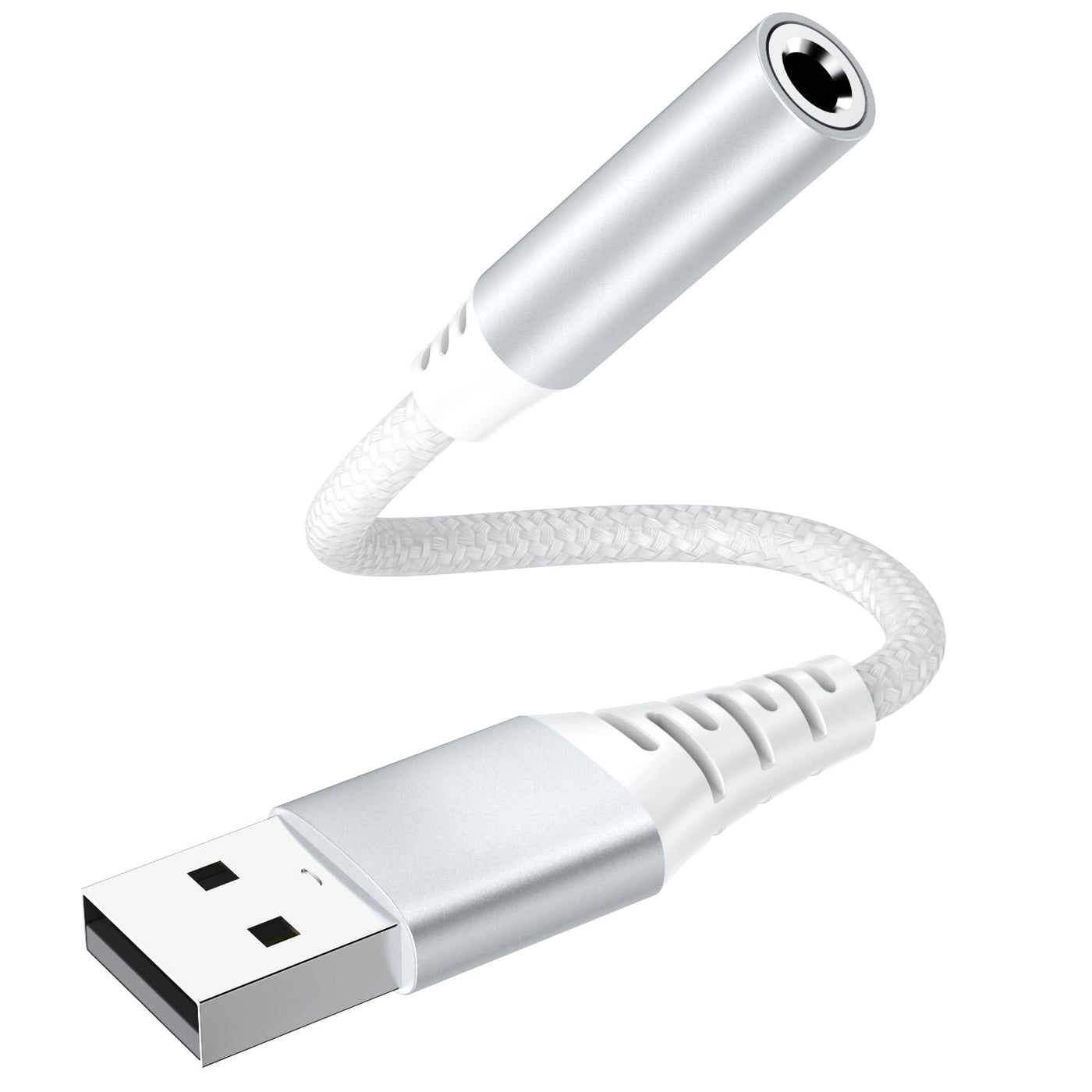Usb To 3.5Mm Jack Audio Adapter,External Sound Card Usb A To Audio Jack Adapter With Aux Stereo Converter Compatible With Headset,Pc Windows,Laptop Mac, Desktops,For Ps4 And More Device (White)