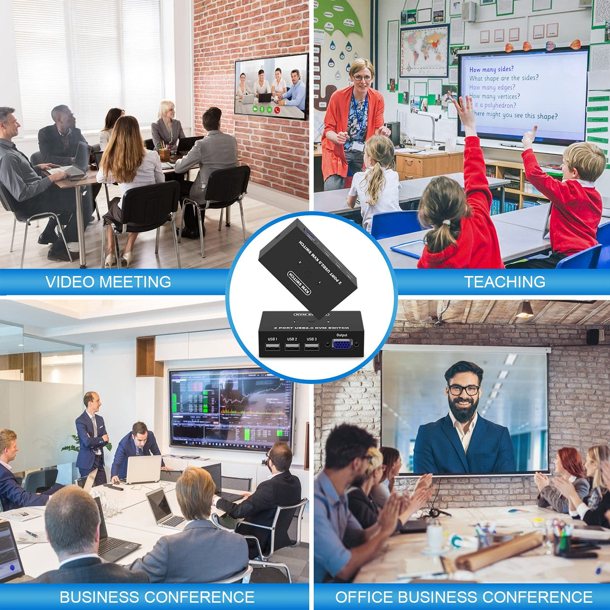 Usb Vga Kvm Switch For 2 Pc Sharing 1 Video Monitor And 3 Usb Devices, Keyboard Mouse Scanner Printer, For Laptop Pc Windows Mac