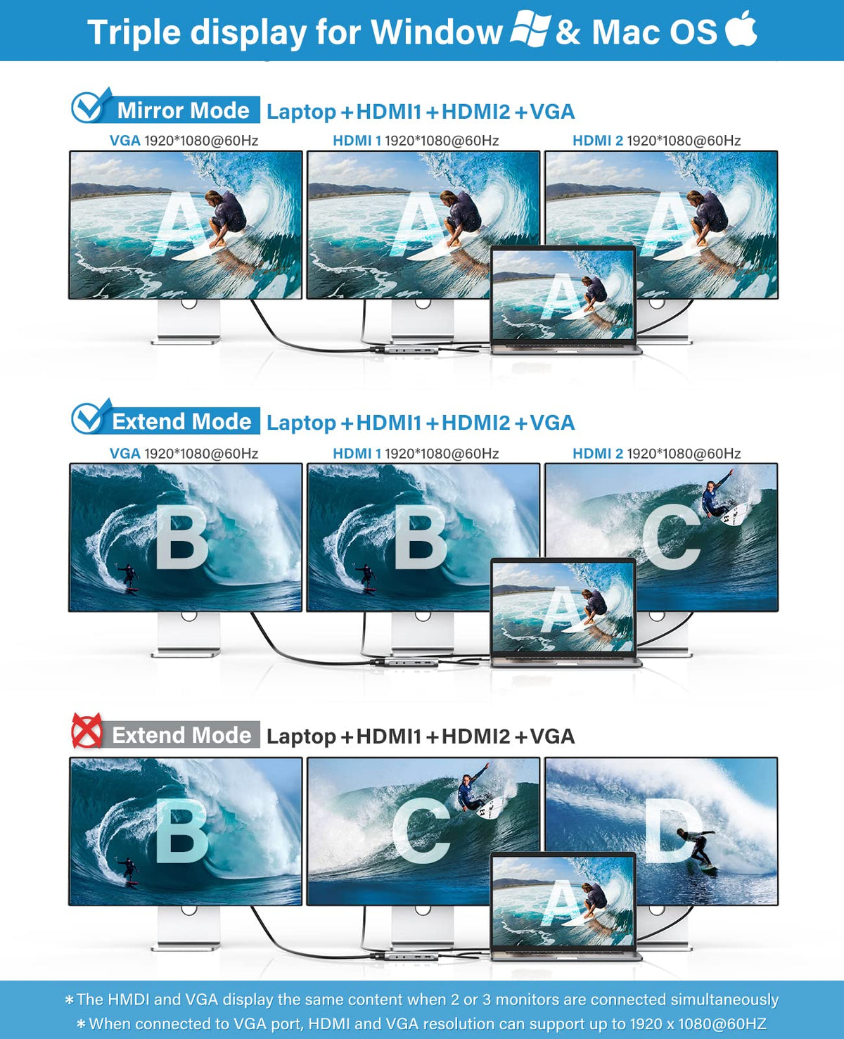 This Usb 3.0 Docking Station Is Compatible For M1/M2/M3 Macbook, More Powerful And Stable With The Ports Of Connectivity, Supports Triple Monitors For Macos And Windows, Dual Monitor Non-Mirror Expended. You Can Expand Your Laptop'S Desktop To Dual Or Triple Displays At Once To Increase Work And Study Productivity, Make You Start A More Intelligent Life.