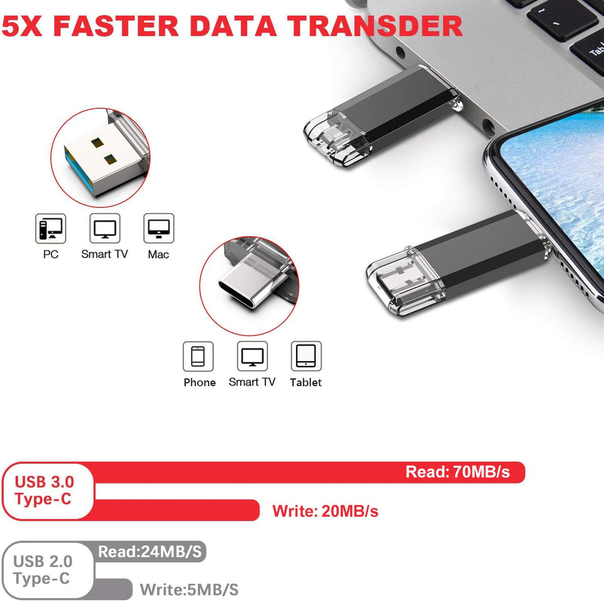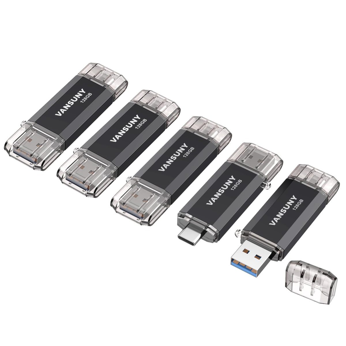 Vansuny 5 Pack 128Gb Usb C Flash Drive 2 In 1 Otg Usb 3.0+Usb C Memory Stick With Keychain Thumb Drive Photo Stick Jump Drive For Android Smartphones, Computers, Macbook, Tablets, Pc