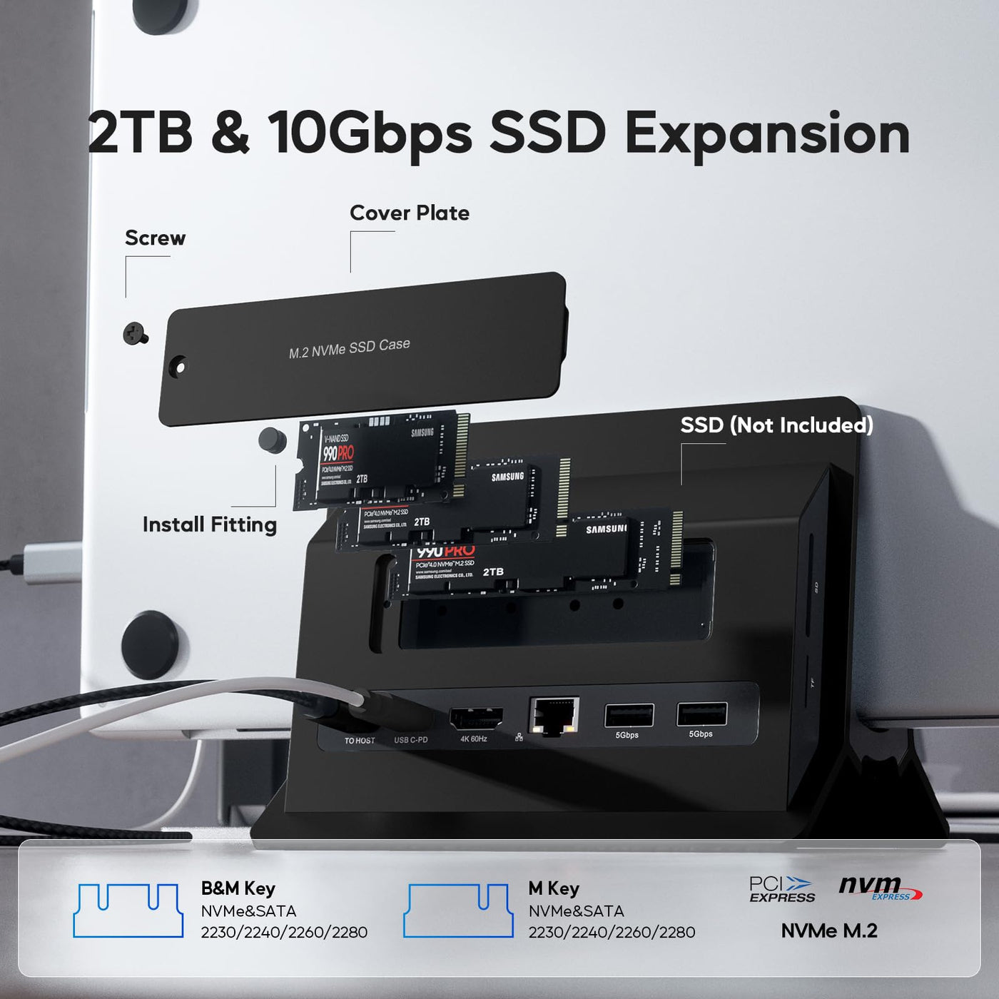 Vertical Macbook Docking Station, Pulwtop Docking Station For Mac Mini With M.2 Nvme Case For Macbook Pro/Air, 4K@60Hz Hdmi, 2Usb C 10Gbps, Sd/Tf, 100W Pd, Rj45, 2 Usb A, Audio For Windows Laptops