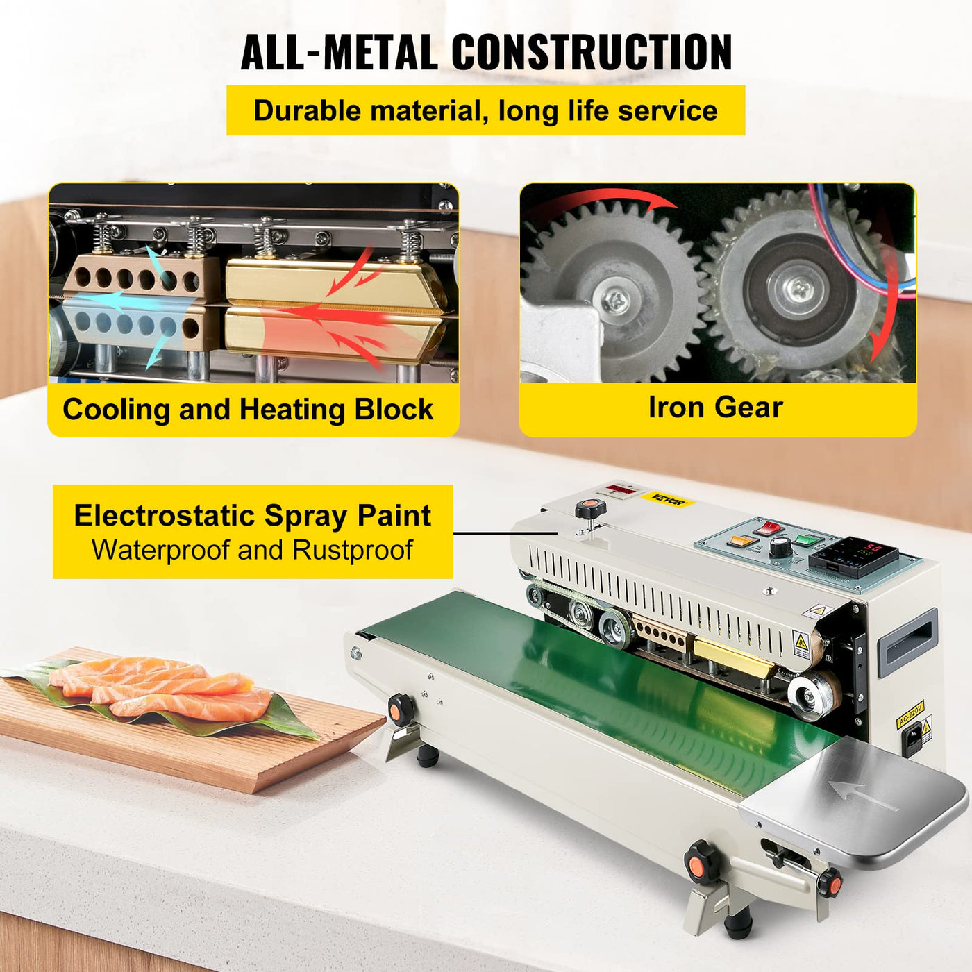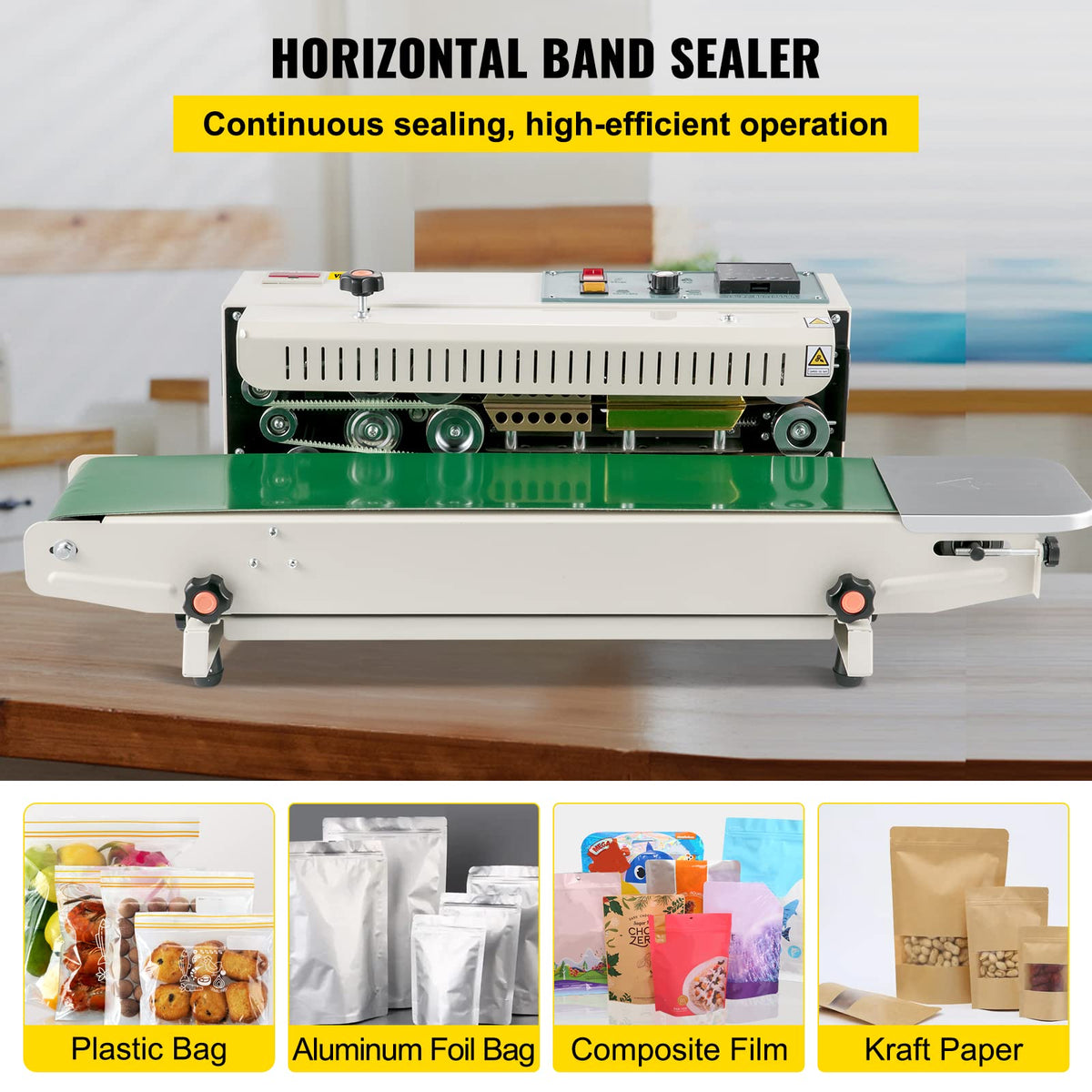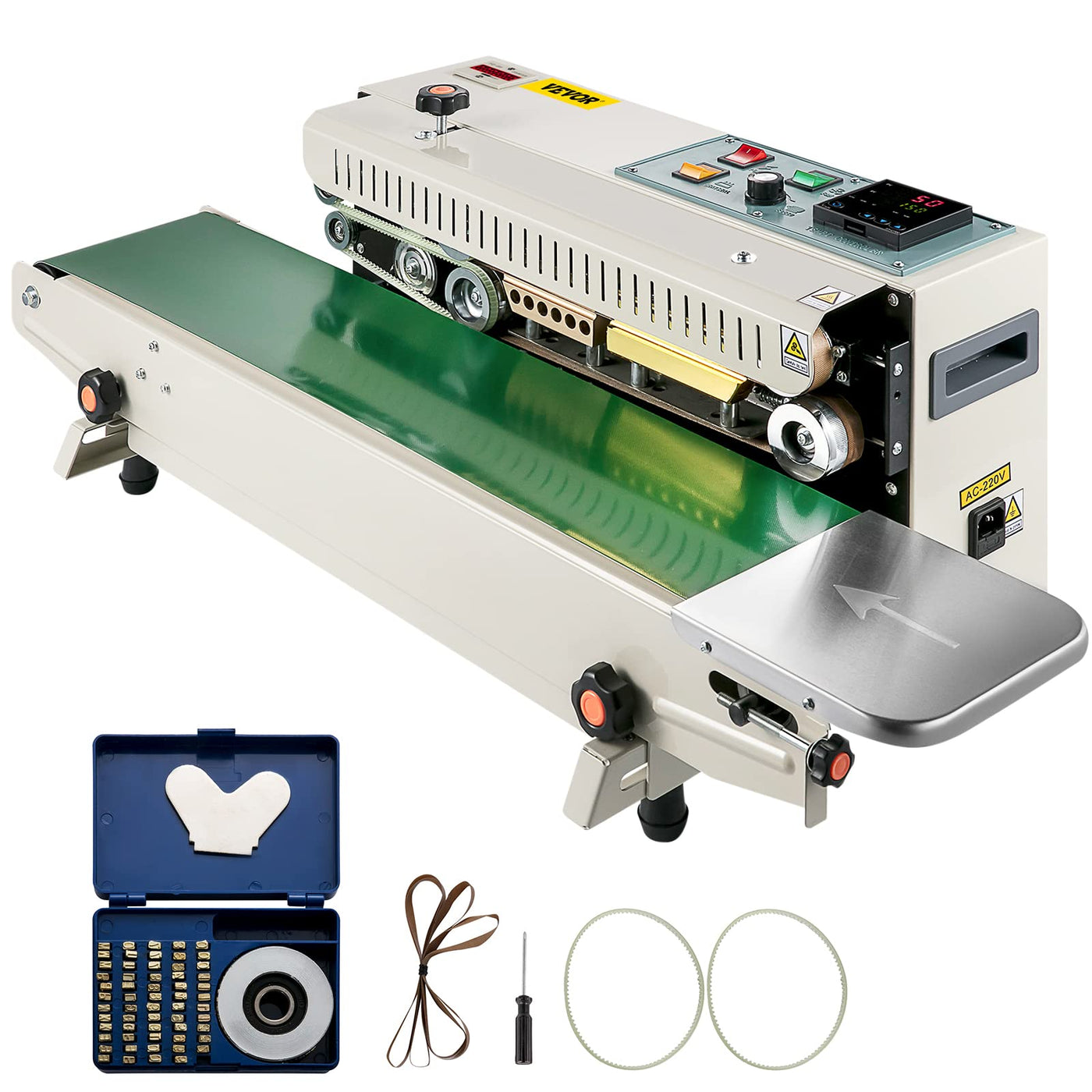 Vevor Continuous Bag Band Sealing Machine Fr900K Band Sealer Machine With Digital Temperature Control Horizontal Bag Sealer For 0.02 0.08 Mm Plastic Bags Continuous Band Sealer W/Printing Function
