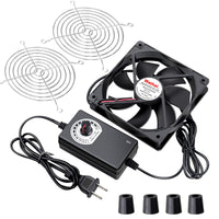 Package Include: 1 Piece Fan And Mounting Screws & Nuts With Fan Control Size:120X120X25Mm Rated Voltage: 12V Rated Current: 0.45A Power : At Slowest Speed, Less Than 2W ; 4.4 W At Full Speed Connecter: Dc 5.5X2.1Mm Female Speed: 3000Rpm Air Flow:92.3Cfm Noise:37Dba Bearing Type: Ball Bearing Cable Length: 23Cm Or 910 Inches Life: 50000 Hours Weight: 170G/Pcs Or 6 Oz 120Mm Computer Fan With Ac Plug, 110V 120V 220V 240V Ac Variable Speed Fan Ac Powerful Fan For Mushroom Growing, Receiver, Amplifier, Biltong Box, X-Box, Sound System Cooling,?Wide Applications & Compact Size? Less Than 5Inches, Take Up Small Space. It Works Great For Diy Fan Or As An Additional Cooling Fan For Your Gaming Needs X-Box, Ps4, Amplifier, Fireplace, Kitchen Window, Server, Humidifier, Mushroom Growing, Sound System, Etc. ?Variable Speed With Ac Plug?The Variable Speed Fan Is Great For Cooling Electronic Components. This Is Especially True When Components Are Used In A Cabinet With Limited Air Flow To Help Cooling. By Having Variable Speed, You Can Adjust The Speed For Proper Cooling With The Least Fan Noise From The Circulating Air. And You Can Plug In A Wall Outlet To Use. ?Adjustable Wind? We Have Taken Into Account Your Various Needs, The Fan Can Rotate Speed From 750Rpm To 3000Rpm, Providing The Most Suitable Wind To Quickly Cool Your Devices Down. ?Dual Ball Bearing?Long Life With 50,000Hours.And Allows The Fans To Be Laid Flat Or Stand Upright. ?What'S In The Box?1 X 120Mm Fan, 1 X Speed Controller, 2 X Fan Grill, 4X Install Screws, 4X Rubber Feet