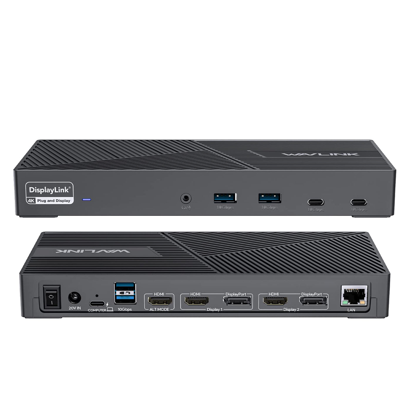 Triple Monitor Support: Supports Triple Monitors At 4K@60Hz Resolution For An Exceptional Visual Experience. Note: Hdmi (Alt Mode) Port Requires Your Laptop'S Type-C Port To Support Video Output. | Powerful Charging Capability: Comes With A Powerful 160W Power Adapter, The Usb-C (Host) Charges Your Laptop With Max.100W To Keep It Running All Day, As Well As Powering Your Connected Peripherals While Displaying Or Transferring Data. Worry-Free About Any Low Battery Situation. Please Make Sure That The Type-C Port Of Your Host Supports Power Delivery. | Multiple Ports For Versatile Connectivity: Equipped With 6 Usb Gen2 (10G) Ports, 1Gbps Ethernet For Fast Data Transfer To And From Your Connected Devices. | Enhanced Audio Experience: Includes An Audio Port, Allowing You To Connect Headphones Or Speakers For Enhanced Audio Experience. | Wide Compatibility: Perfect For Laptops With Usb 3.1 Full-Function Type C Port Or Thunderbolt 3/4 Port. Support Windows 11/10/8.1/8/7; Mac Os 10.14-13.X And Latest, Chrome Os, Ubuntu 20.04, 22.04, Android And Harmony Os. Unsupported With Unix Systems, Linux And Ipad Os. (Follow The Instructions To Download The Latest Displaylink Drivers Before Use.)
